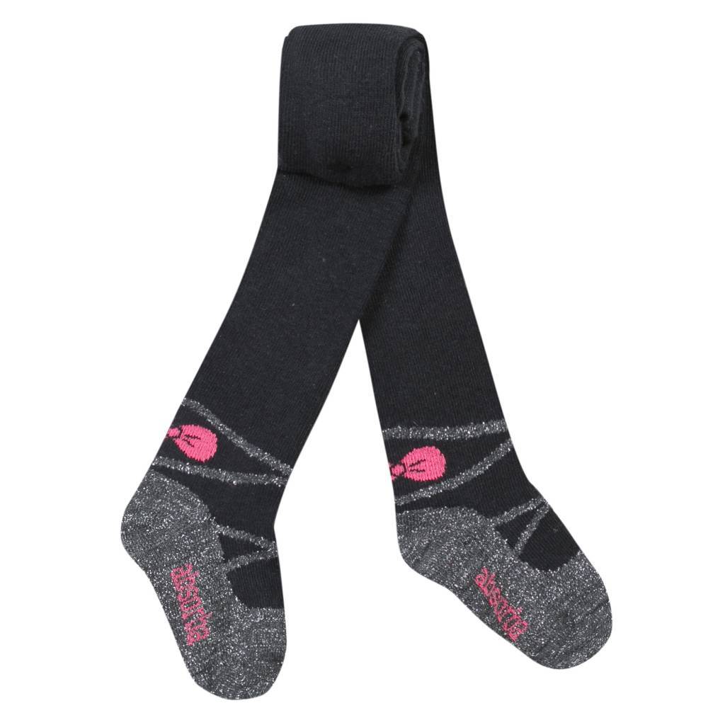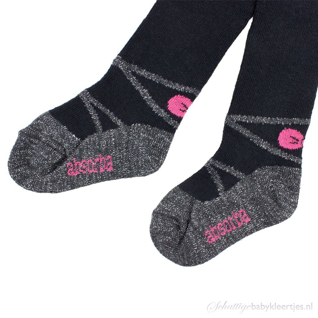 Mooi maillotje van het Franse topmerk Absorba. De maillot is zwart en heeft een ingebreid zilveren schoentje op het voetje. Hierdoor staat dit maillotje ook geweldig zonder schoentjes aan. Op de hiel zit een ingebreid roze strikje, op de voetzool staat met roze letters "Absorba". Deze mailoot komt ui de collectie Rock Couture, maar kan gecombineerd worden met de rest van de Absorba collectie.