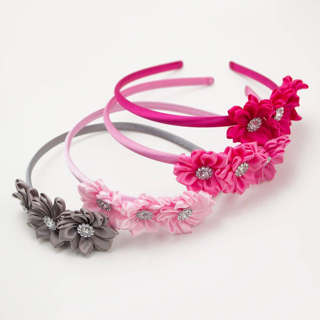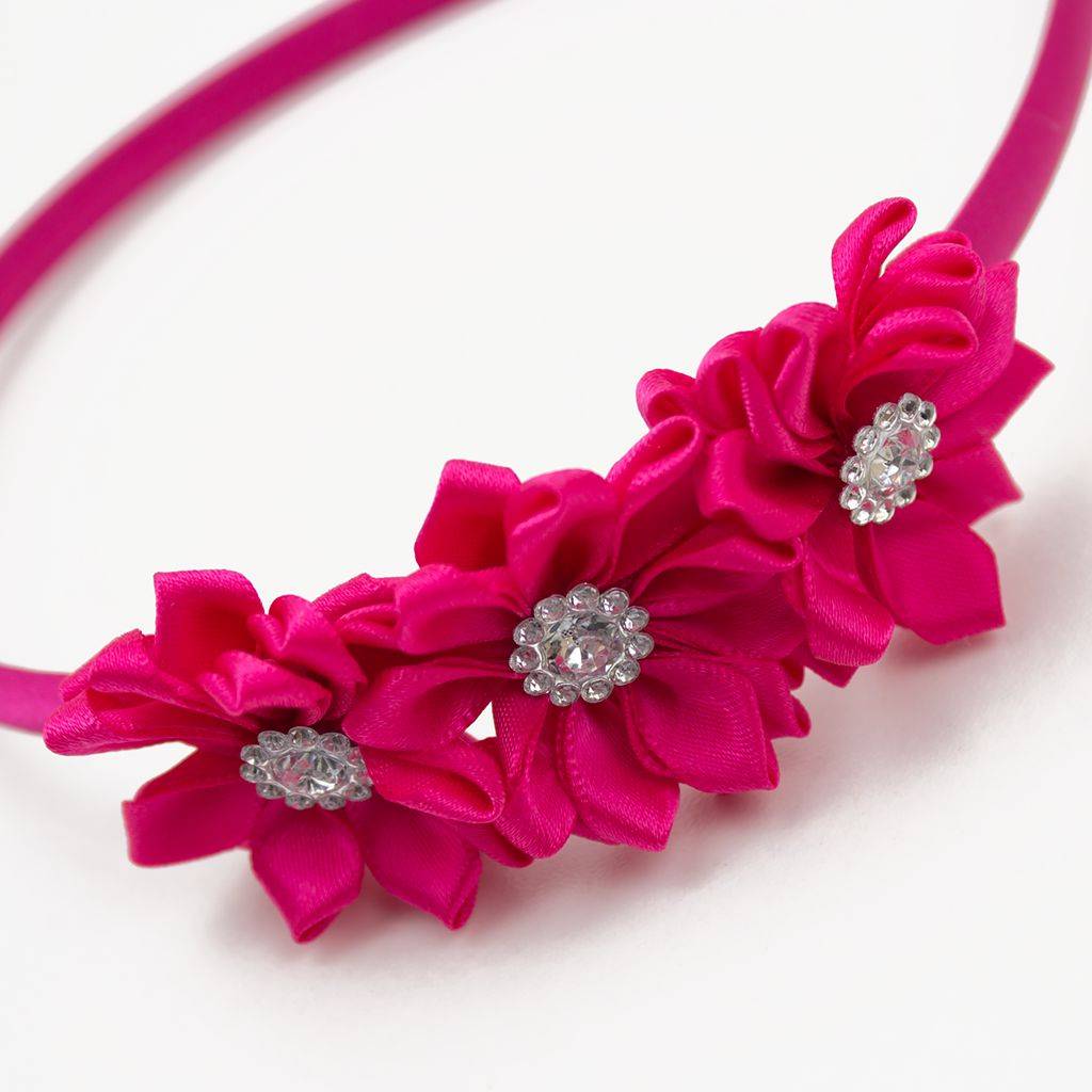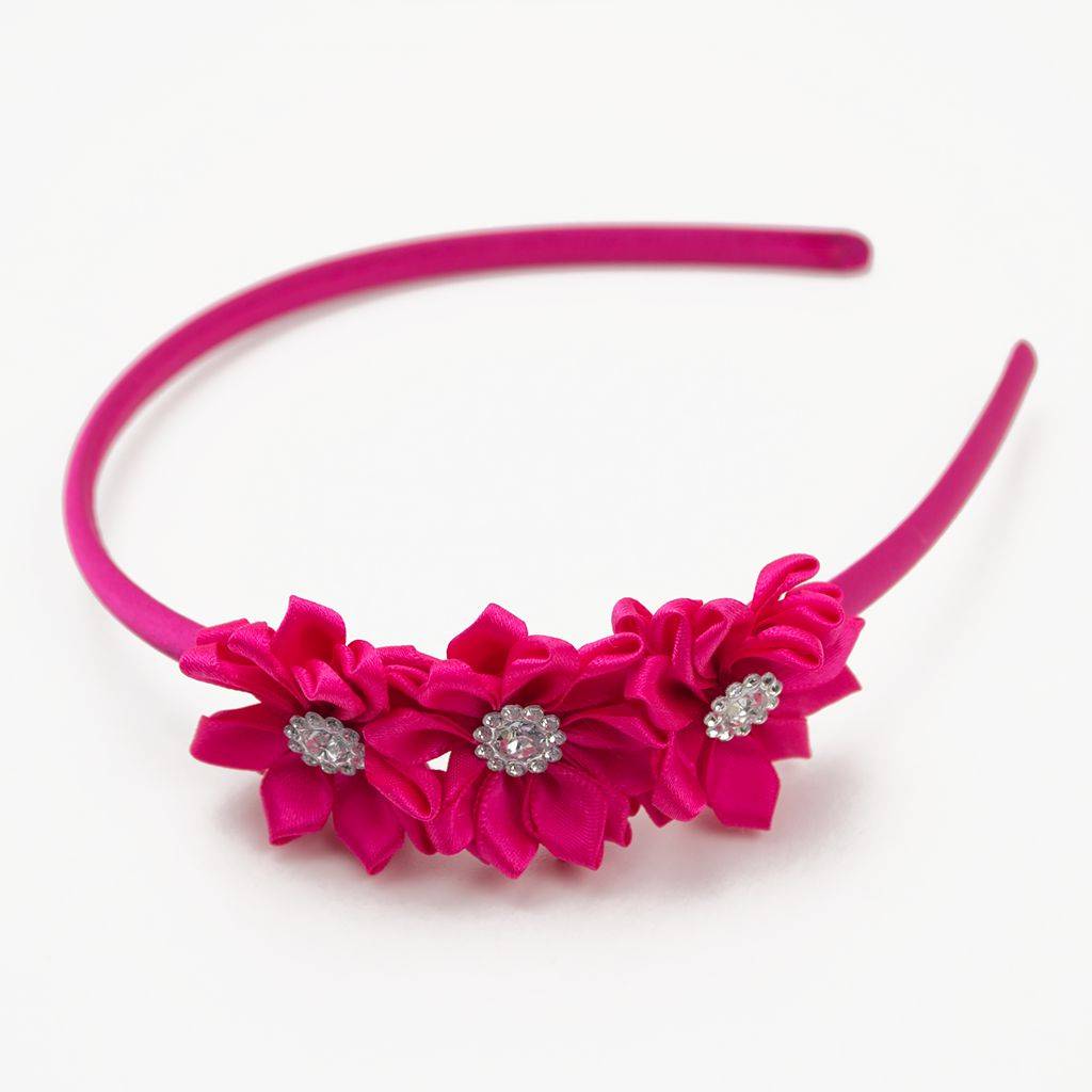 Diadeem drie satijnen bloemen strass (fuchsia)