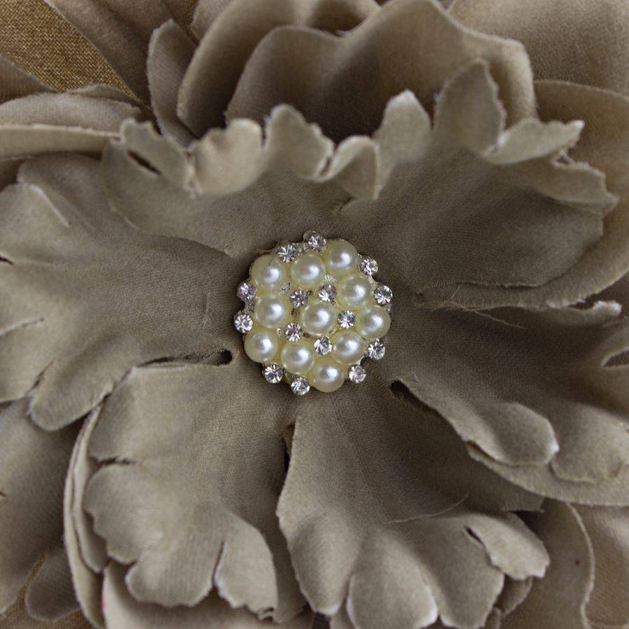 - De caramel pioenroos is 11 cm in diameter en heeft een schitterend hart van parels en strass. De bloem bestaat uit verschillende lagen bloemblaadjes en is levensecht.