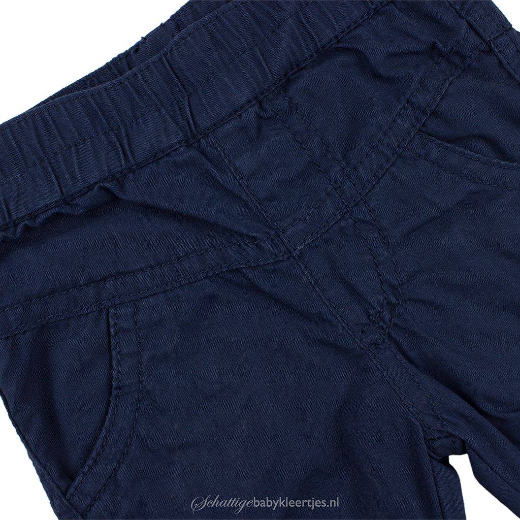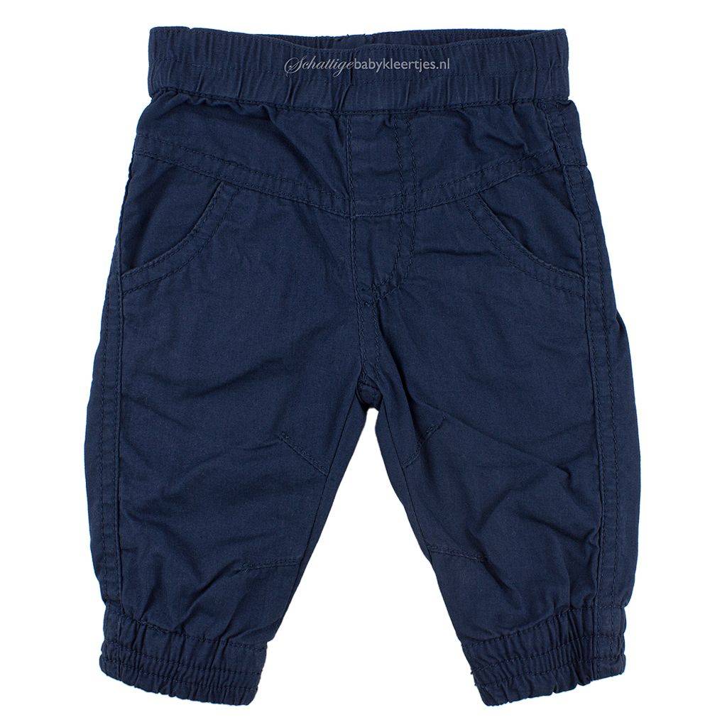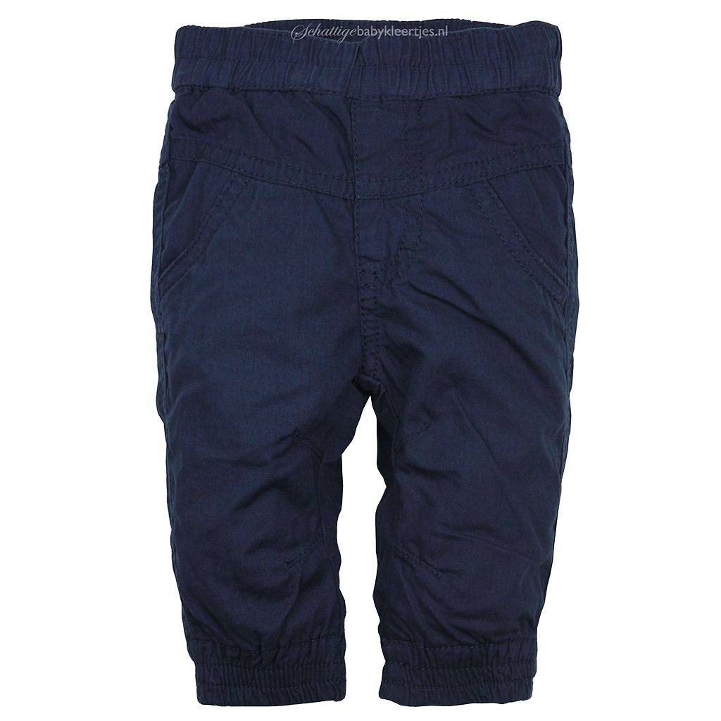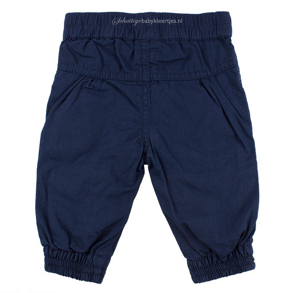 Heerlijke warme, gevoerde broekje uit de collectie Love in een mooie diep donkerblauwe kleur. Het broekje heeft een makkelijke elastische band in de taille. Er zit een verlaagde naad onder de taille waar twee ronde steekzakjes onder zitten. Met een siernaadje is een (nep)ritssluiting gemaakt. Aan de broekspijpjes zit een comfortabel elastiek waardoor het broekje aan de enkels goed aansluit. Aan de binnenkant van de broekspijpjes zitten twee, kleine, schuine siernaadjes aan ieder beentje. Op de rug is het broekje onder de verlaagde naad onder de tailleband licht geplooid, heel snoepig. Makkelijk broekje, goed te combineren door de neutrale kleur en de mooie snit.