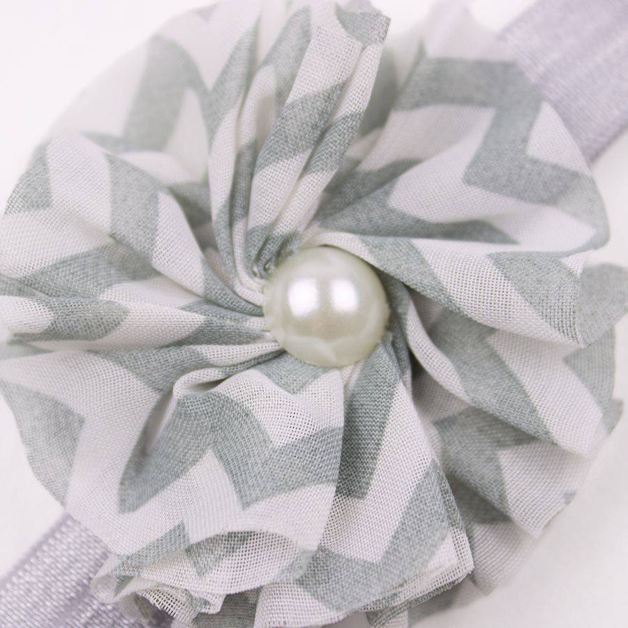 - Dit is een prachtig haarbandje met een grijs/witte bloem met zig-zag motief op een grijs haarbandje.