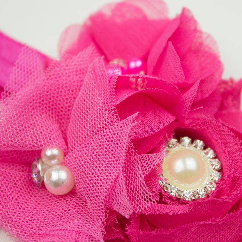 Baby haarbandje chiffon en tulle bloemen (fuchsia)