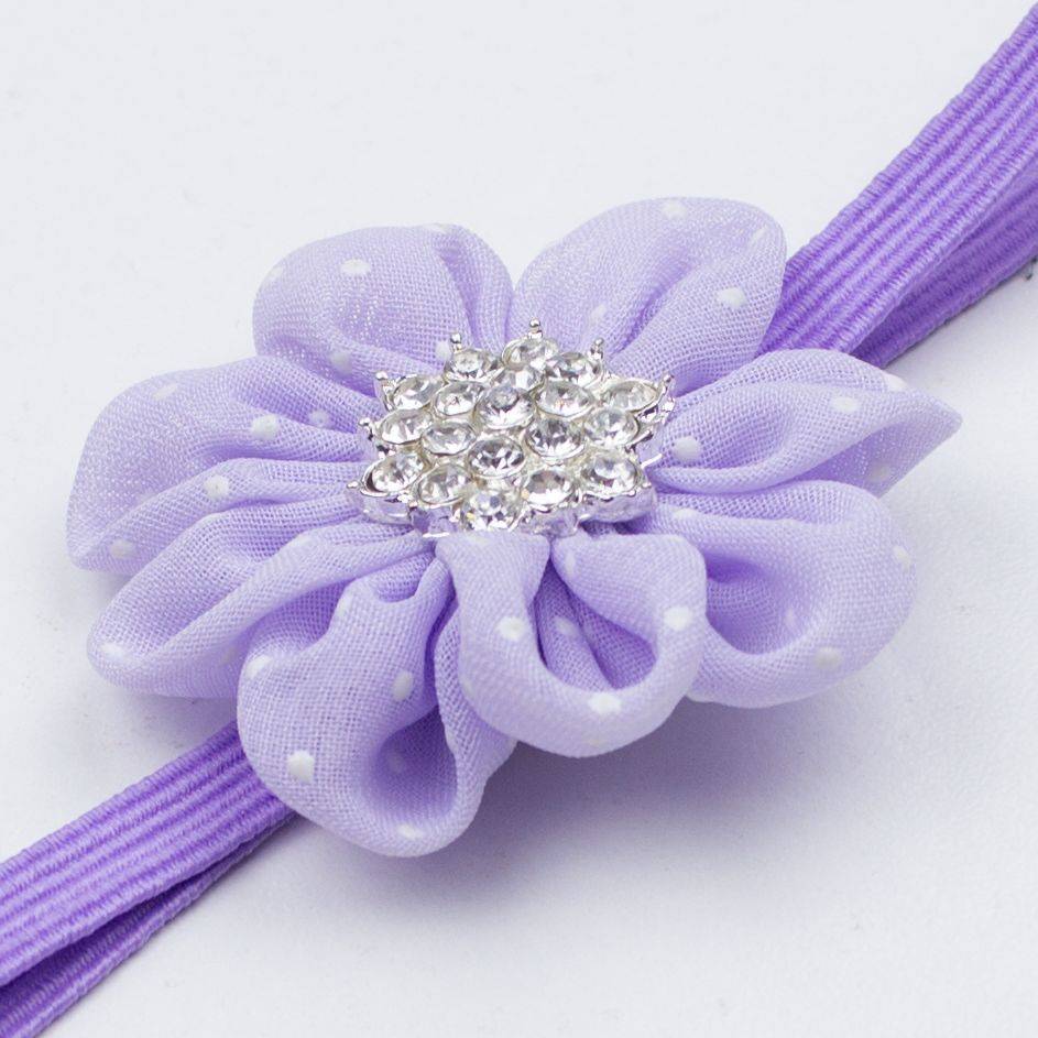Baby haarbandje chiffon stippel bloem strass (lila)