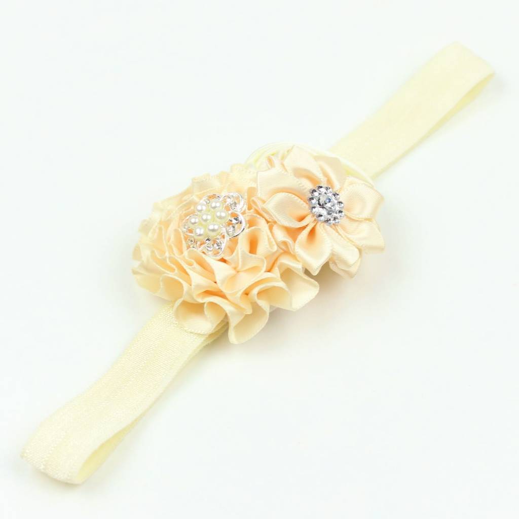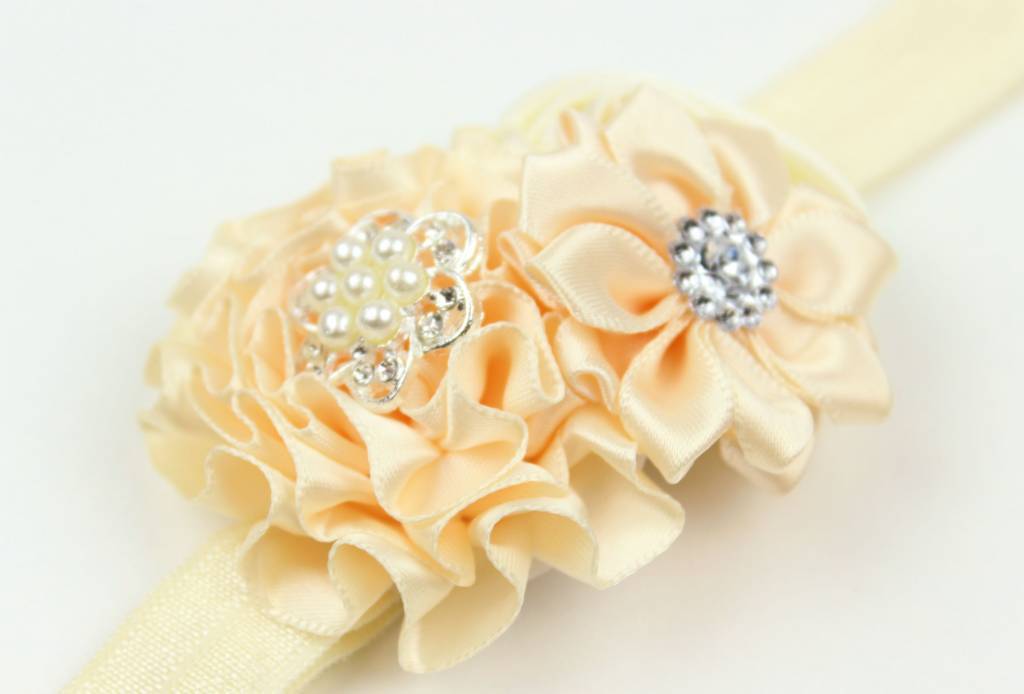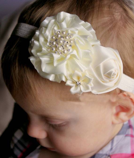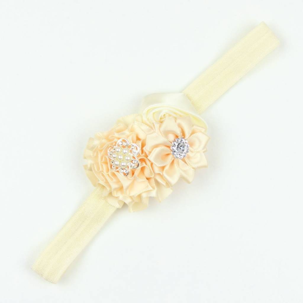 - Prachtig haarbandje met drie ivoorkleurige bloemen op een ivoren haarbandje.