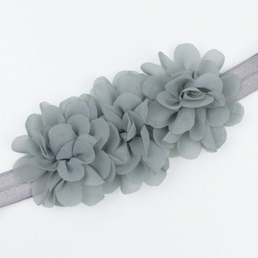 Baby haarbandje drie chiffon bloemetjes (grijs)