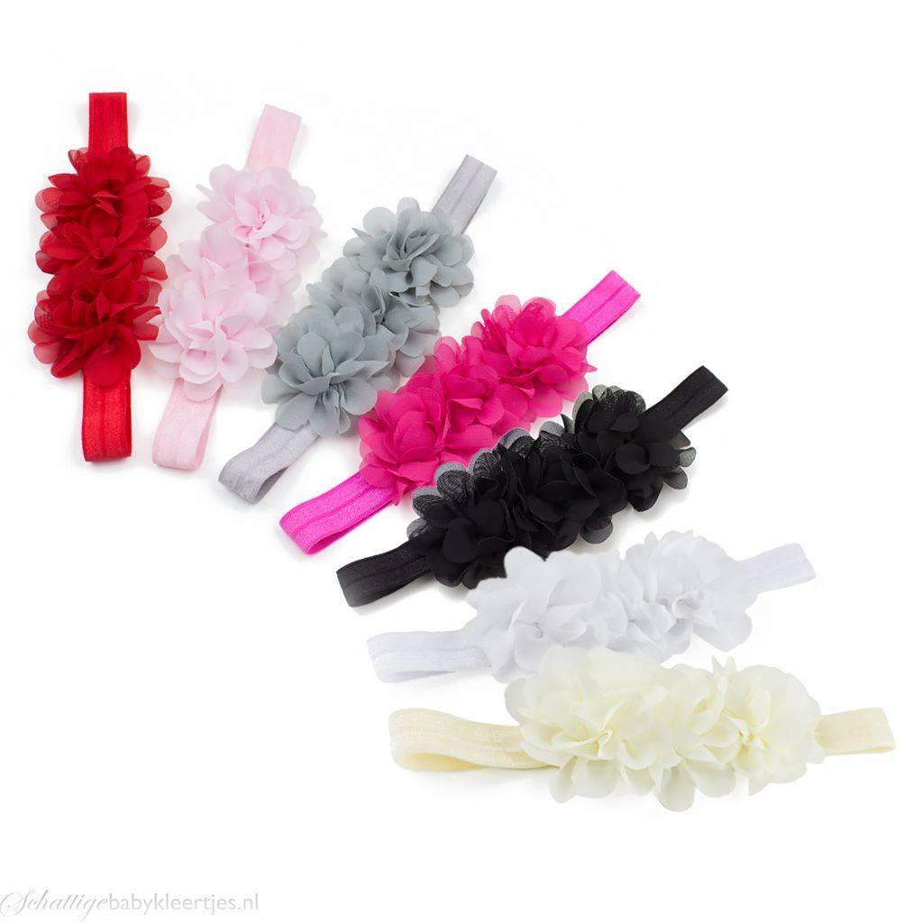 - Dit haarbandje is verkrijgbaar in de kleuren lichtroze, fuchsia, wit, ivoor, grijs en rood,