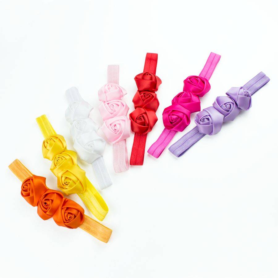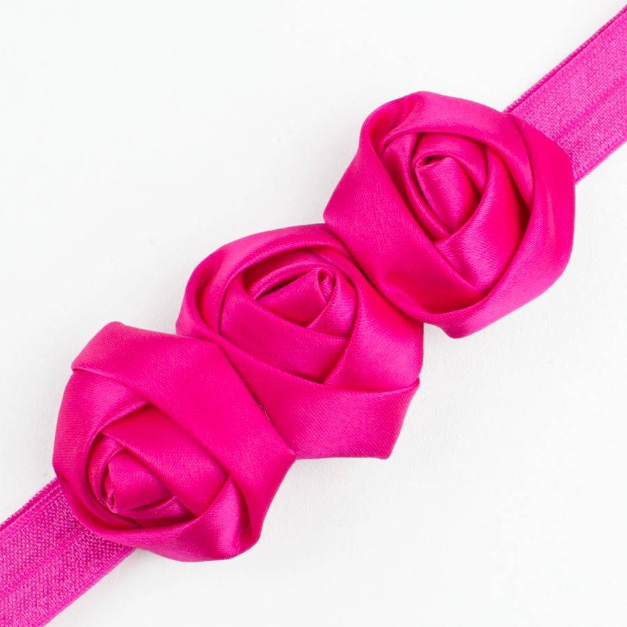Baby haarbandje met drie satijnen rozen (fuchsia)