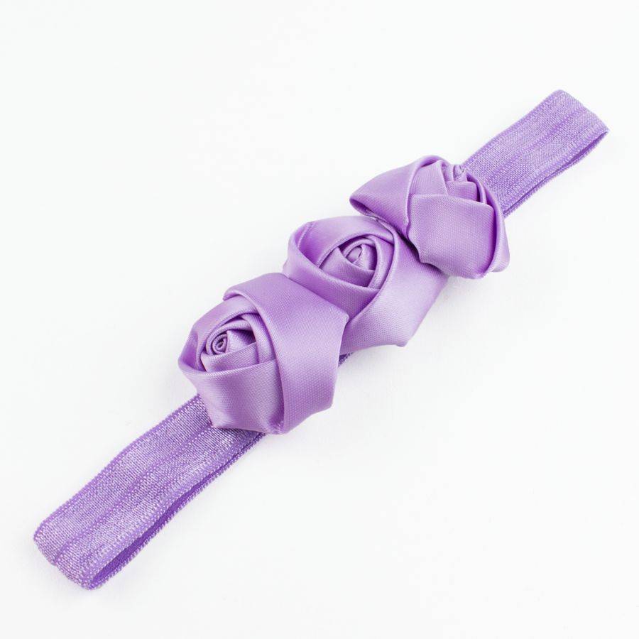 - Lief haarbandje met drie lila bloemen op een lila haarbandje.