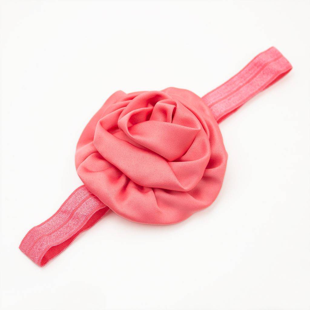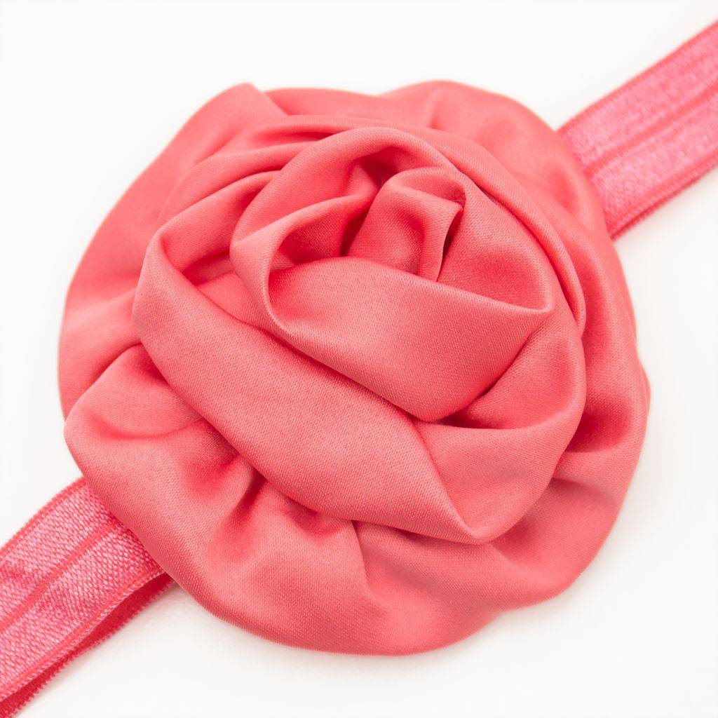 - Haarbandje voor baby met gerolde, satijnen rozet mooie koraalkleur. Mooie kwaliteit! In meerdere kleuren leverbaar.