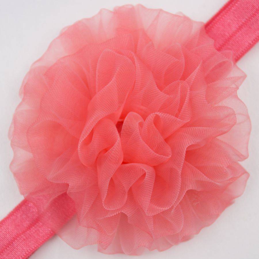 - Dit is een prachtig haarbandje met een grote koraalkleurige organza bloem op een koraal haarbandje.