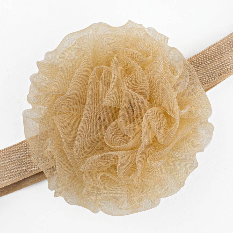 - Dit is een prachtig haarbandje met een grote zandkleurige organza bloem op een zand haarbandje.