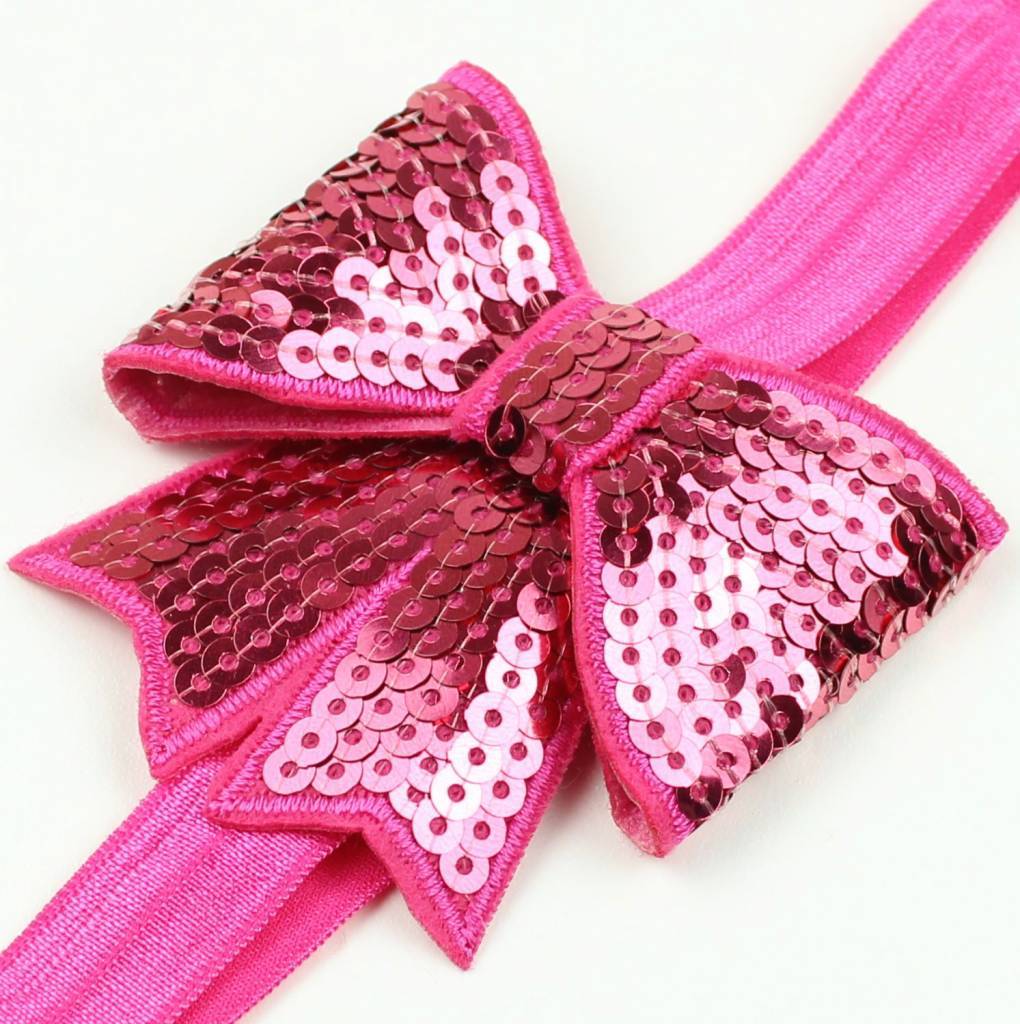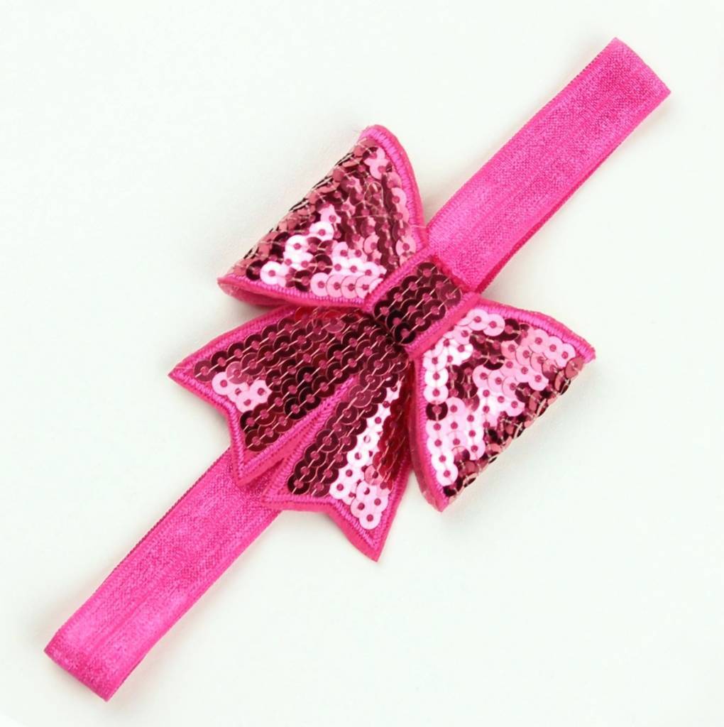 - Op de strik zitten fuchsia pailletjes, heel chique.