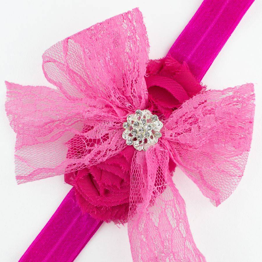 Baby haarbandje kanten strik met strass (fuchsia)