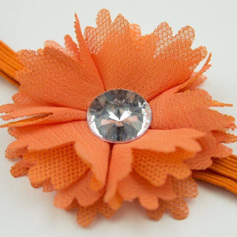 - Dit is een prachtig haarbandje met een kleine, oranje bloem op een oranje, smal haarbandje.