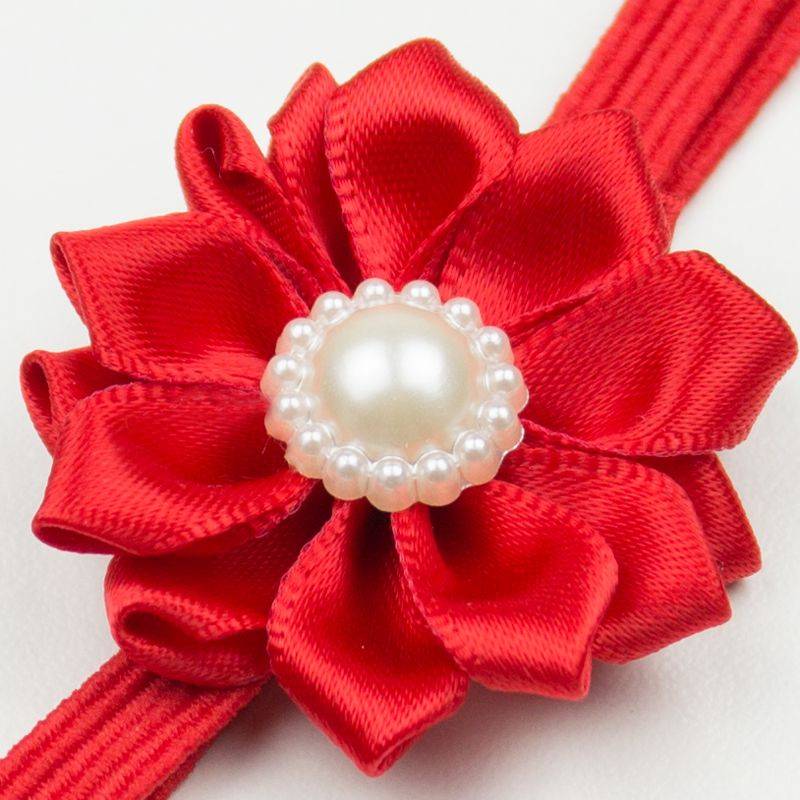 Baby haarbandje kleine satijnen bloem parel (rood)