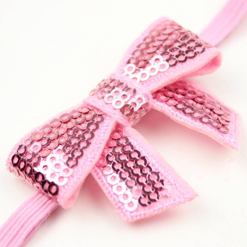 - Kleine lichtroze strik op een smal, lichtroze haarbandje.