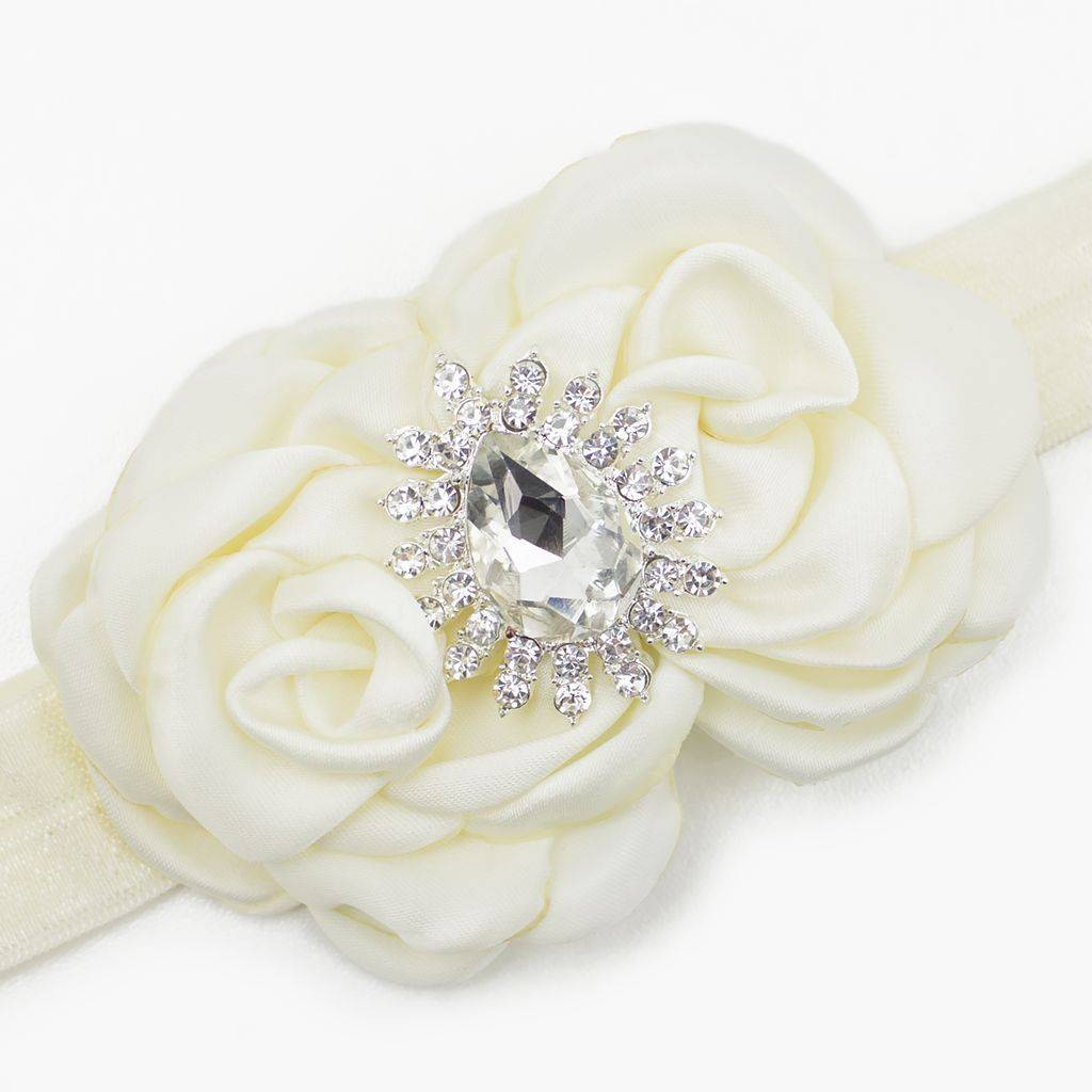 Baby haarbandje luxe rozetten met strass (ivoor)