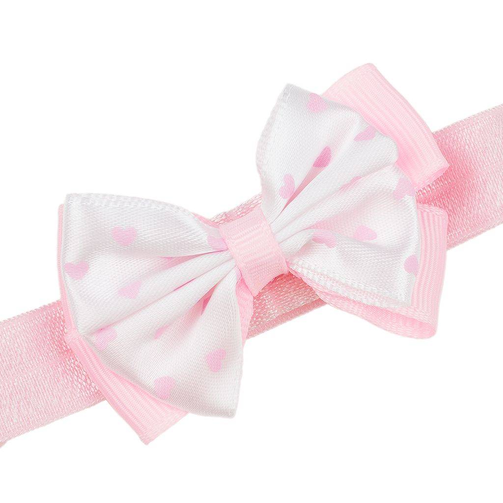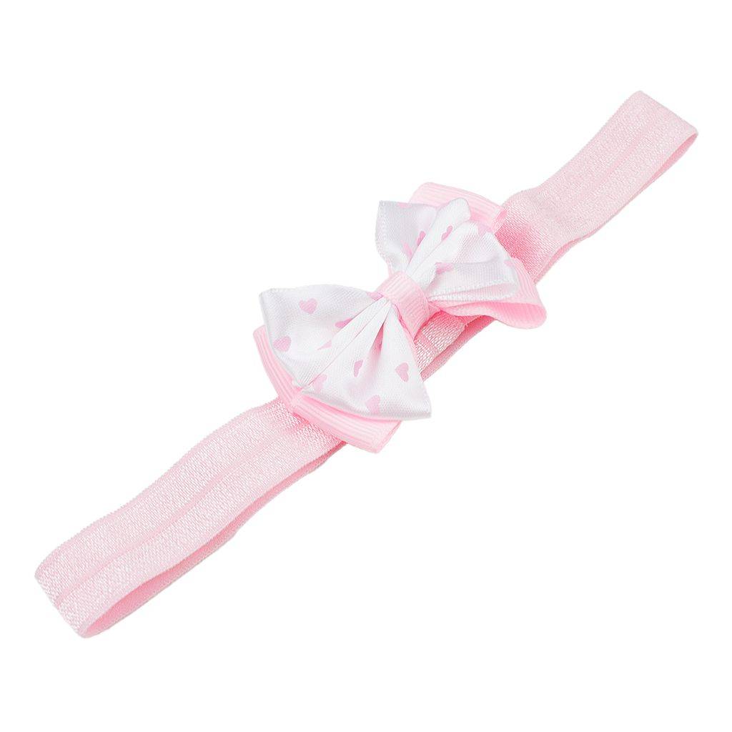 Baby haarbandje met dubbel hartjes strikje (lichtroze)