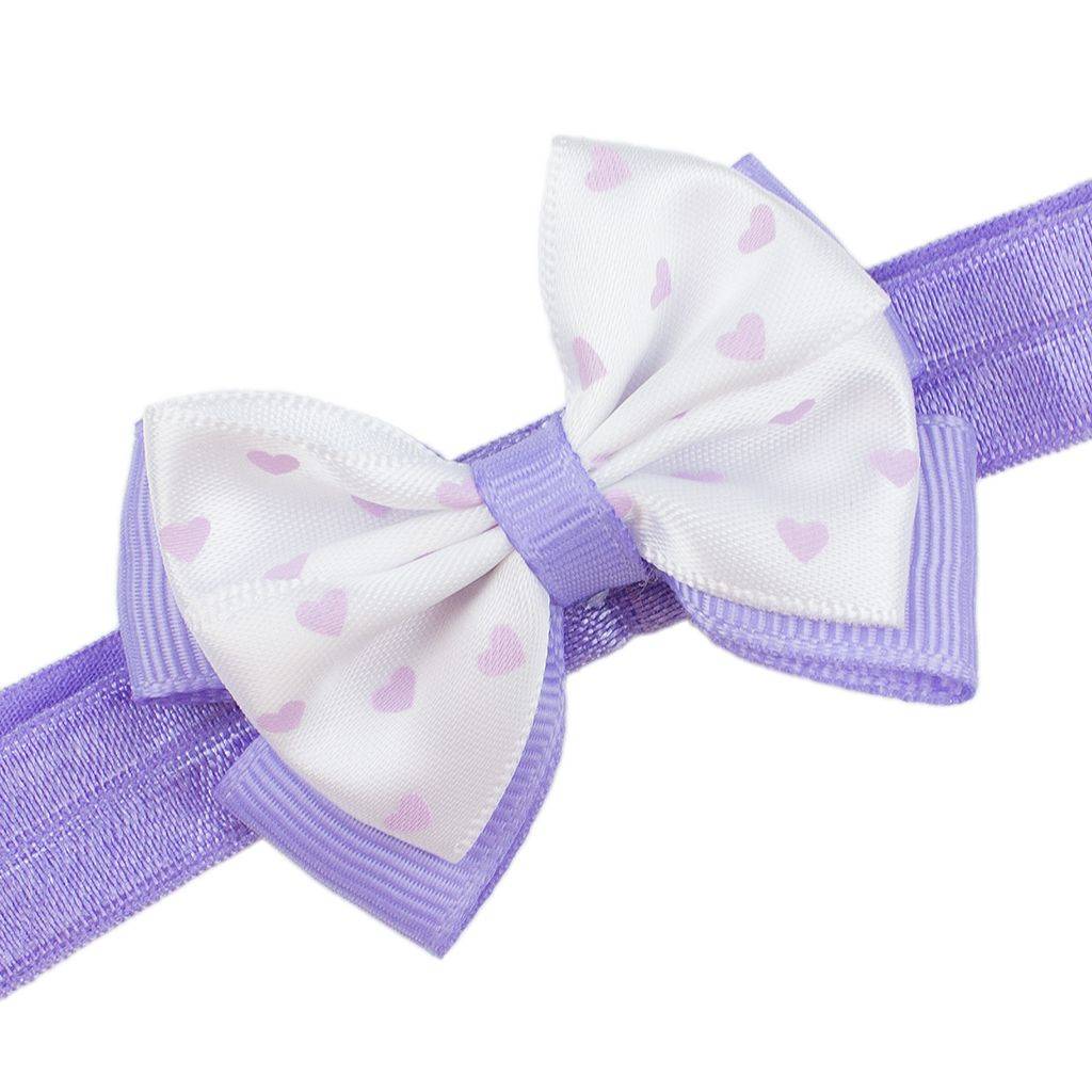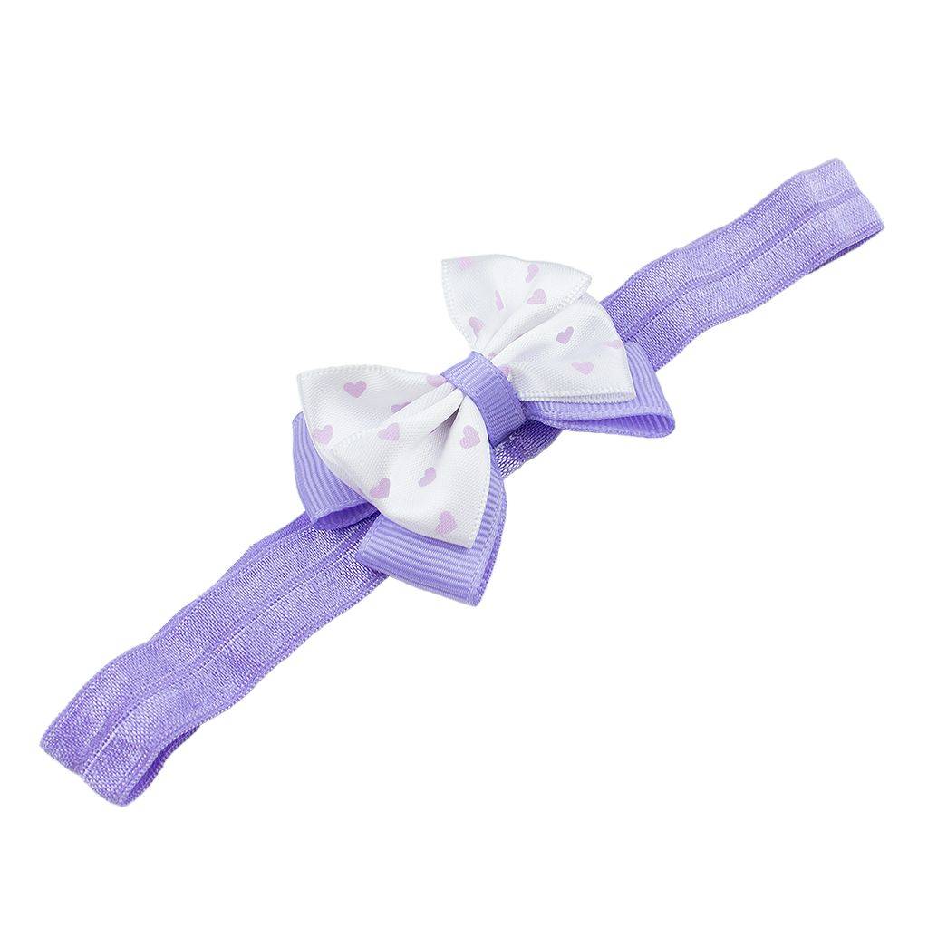Baby haarbandje met dubbel hartjes strikje (lila)