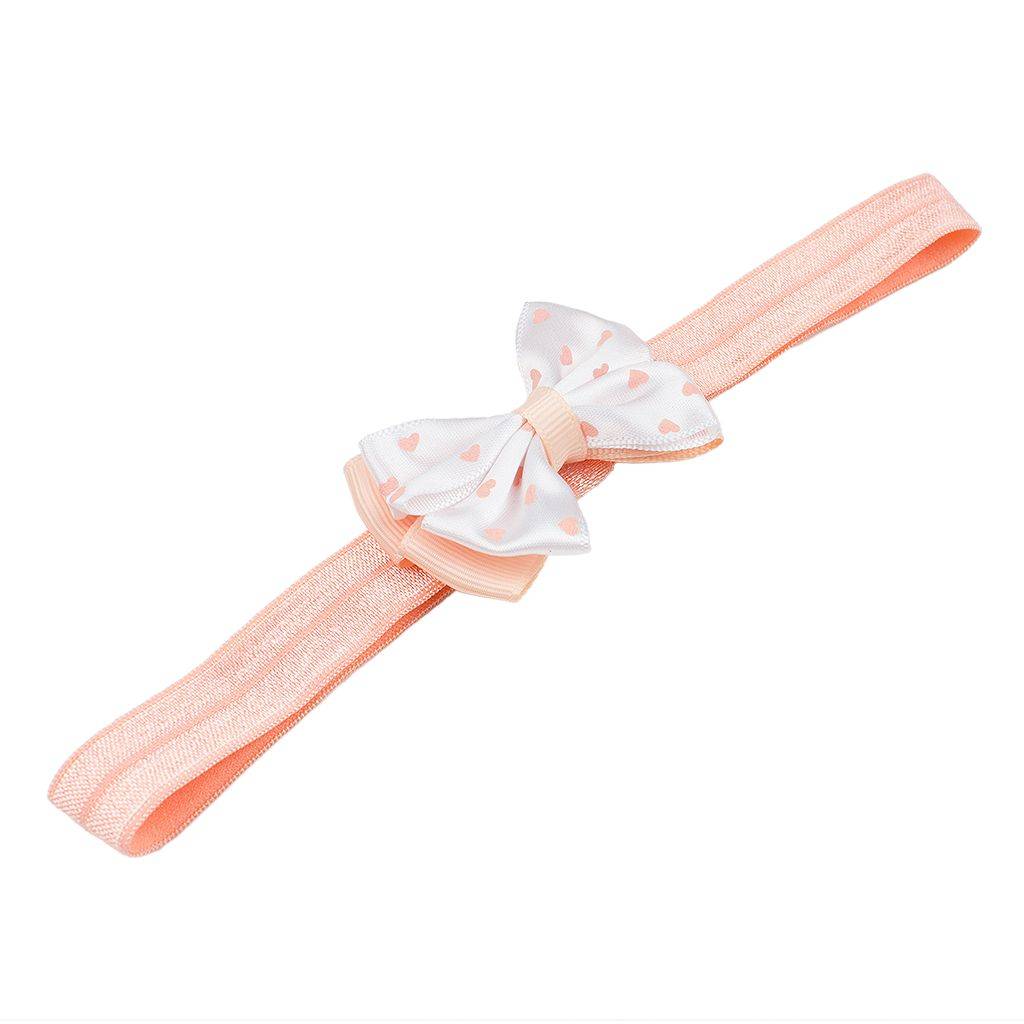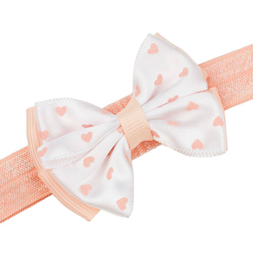 Baby haarbandje met dubbel hartjes strikje (perzik)