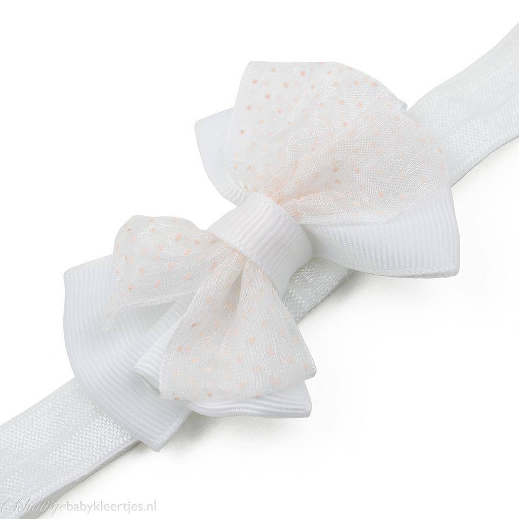 Baby haarbandje met dubbele chiffon stippel strik (wit)