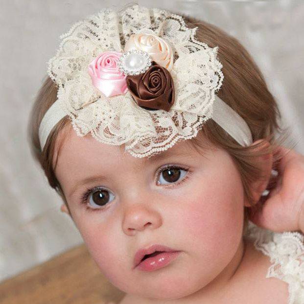 Baby haarbandje met kant (bruin/oudroze/ivoor)