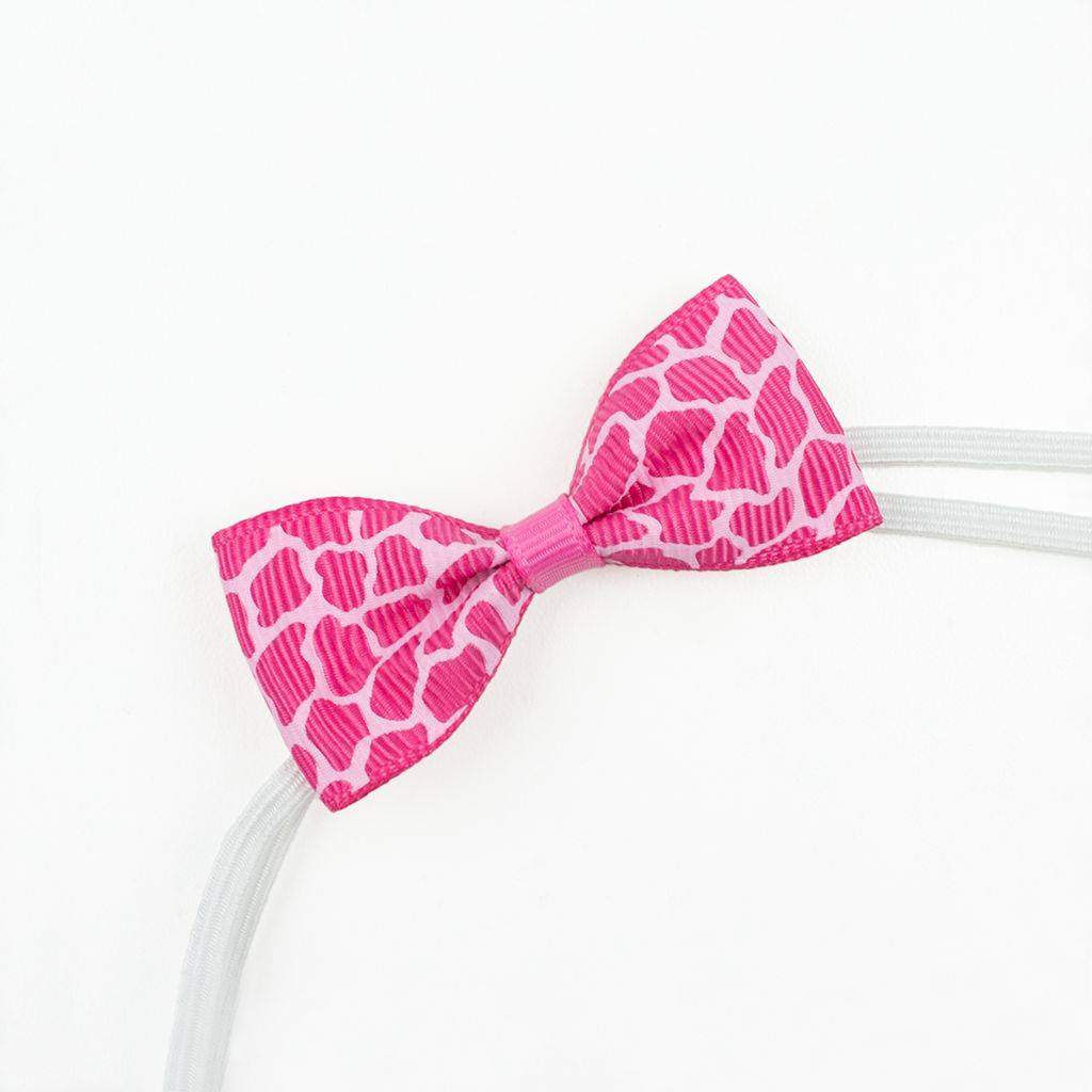- Klein wit haarbandje met een roze mini strikje van stof met luipaard patroontje.