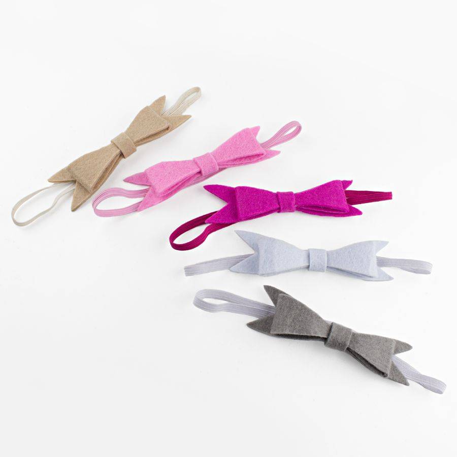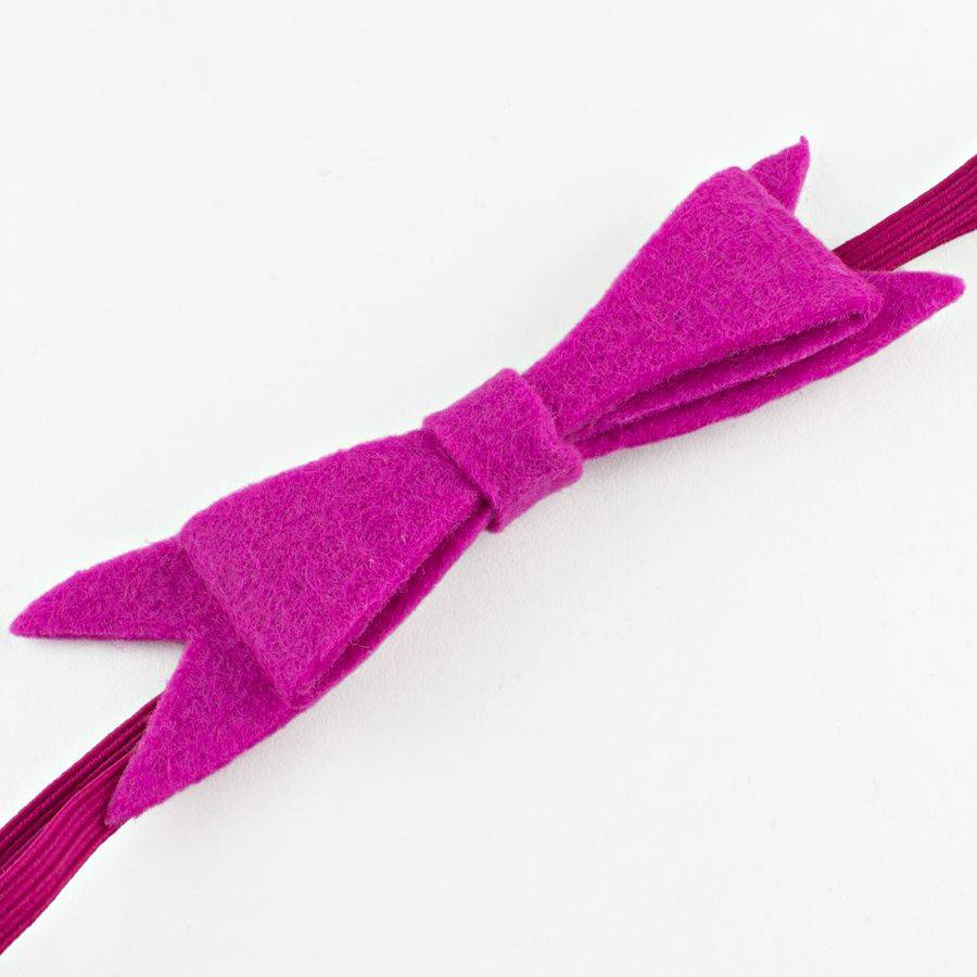 Bijzonder haarbandje, smal, met strik gemaakt van vilt.