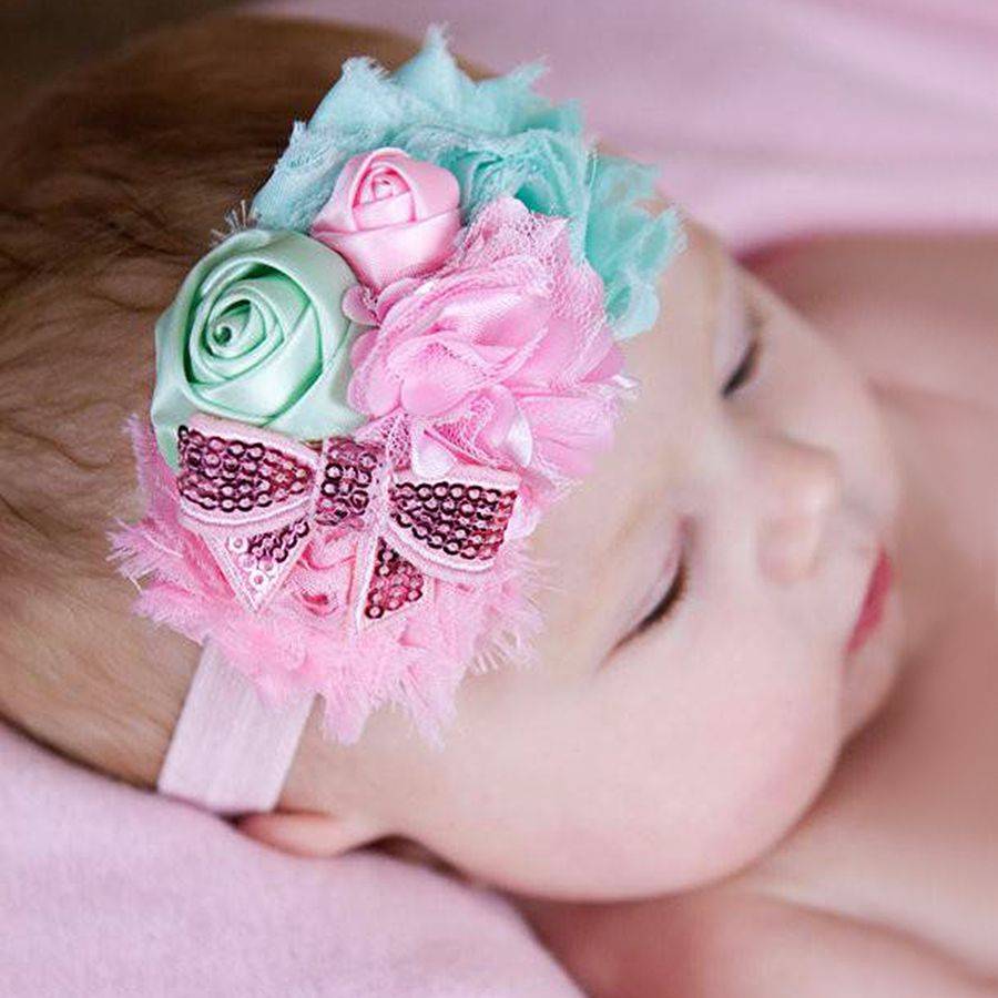 Baby haarbandje mint/lichtblauw/lichtroze
