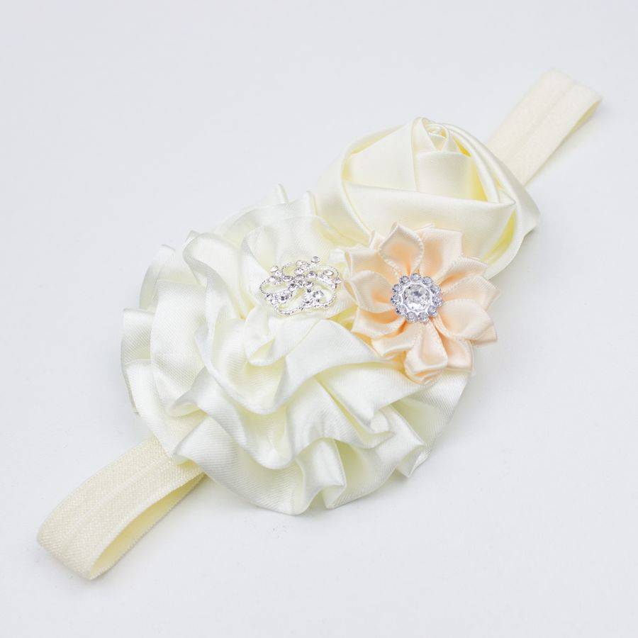 - Lief haarbandje met drie ivoorkleurige bloemen bloemen op een ivoor haarbandje.