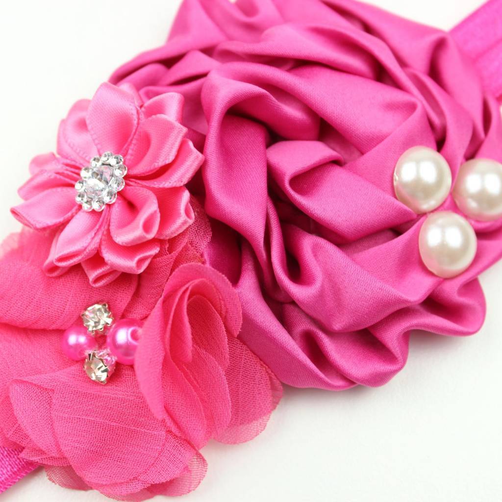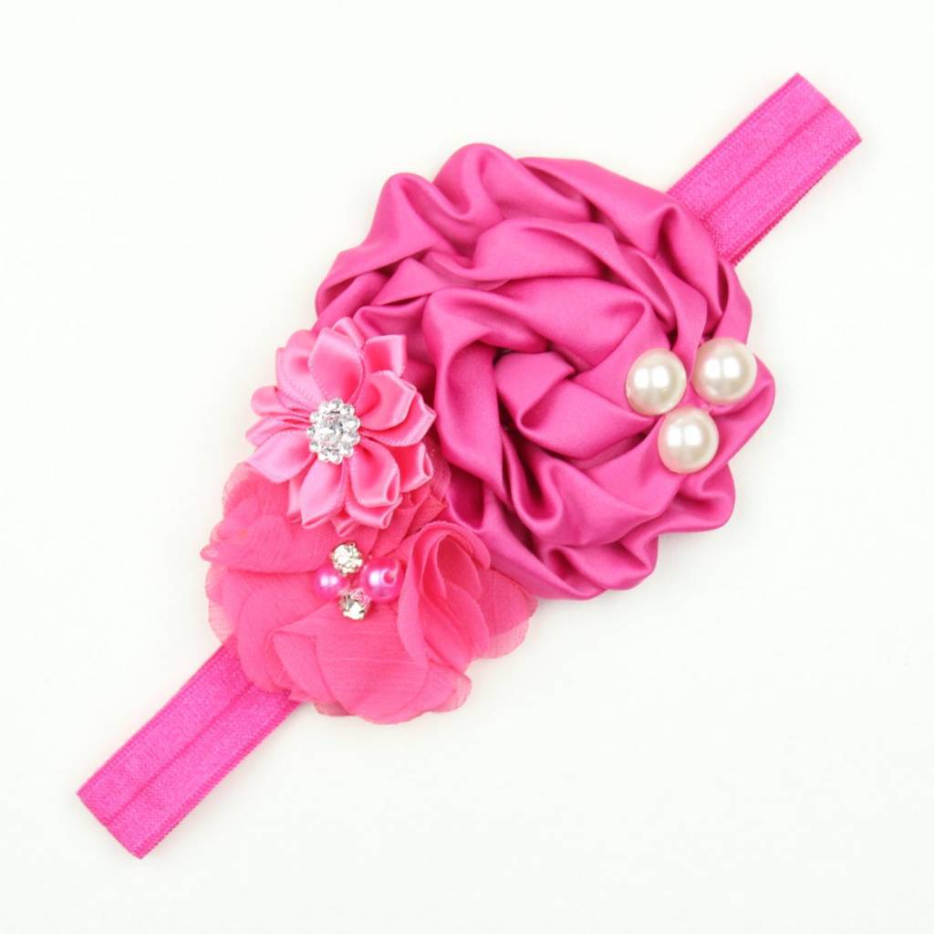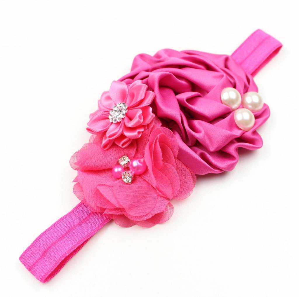Baby haarbandje satijnen bloemen parel/strass fuchsia