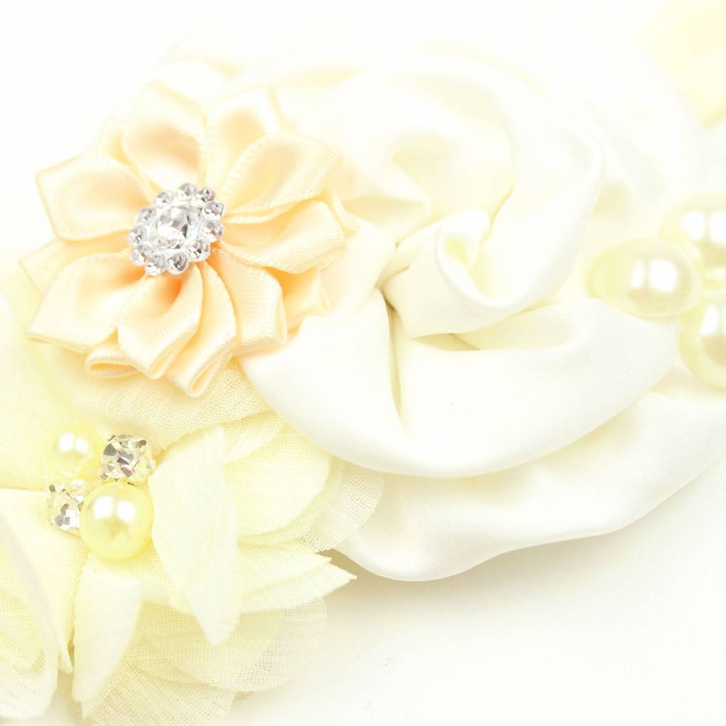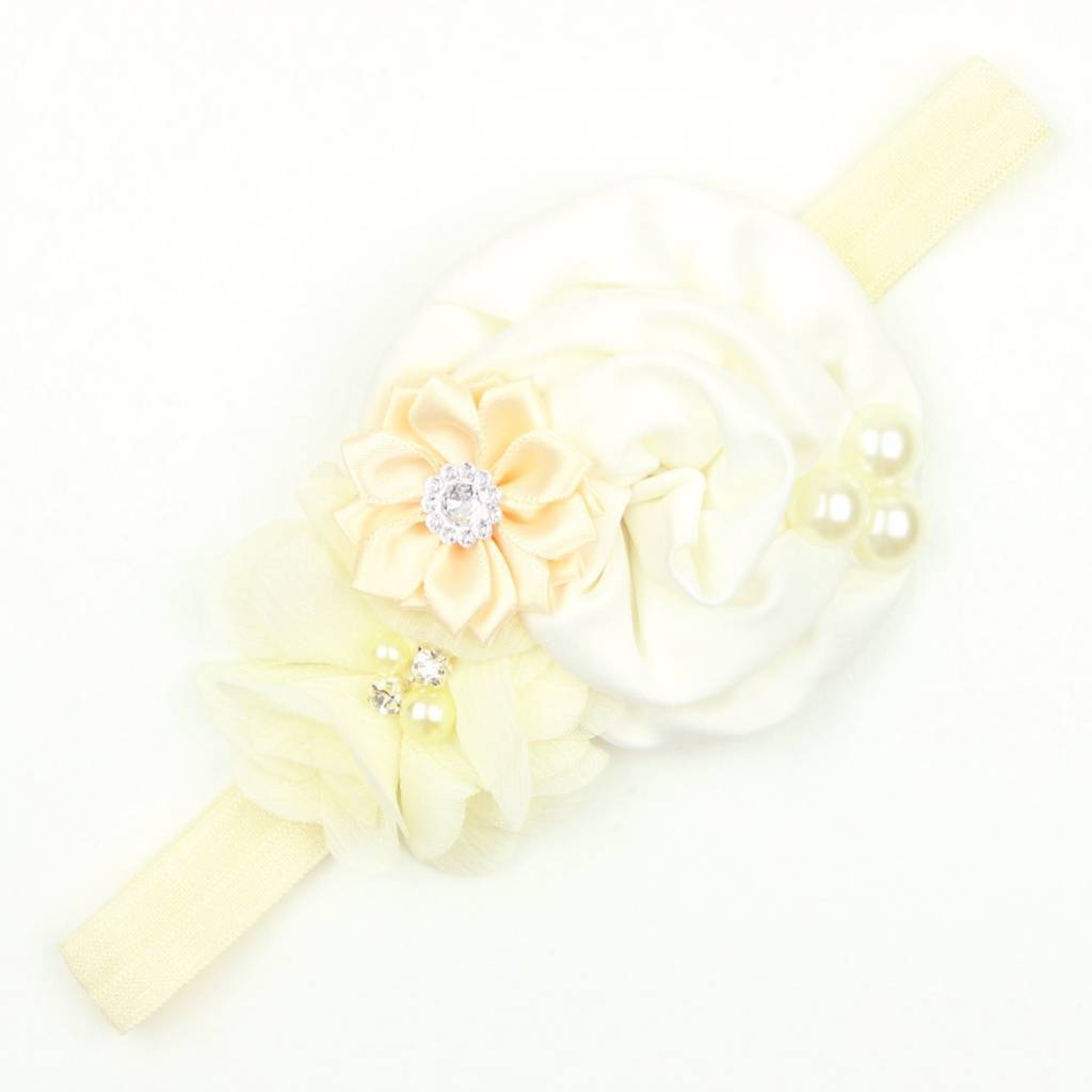 Baby haarbandje satijnen bloemen parel/strass ivoor
