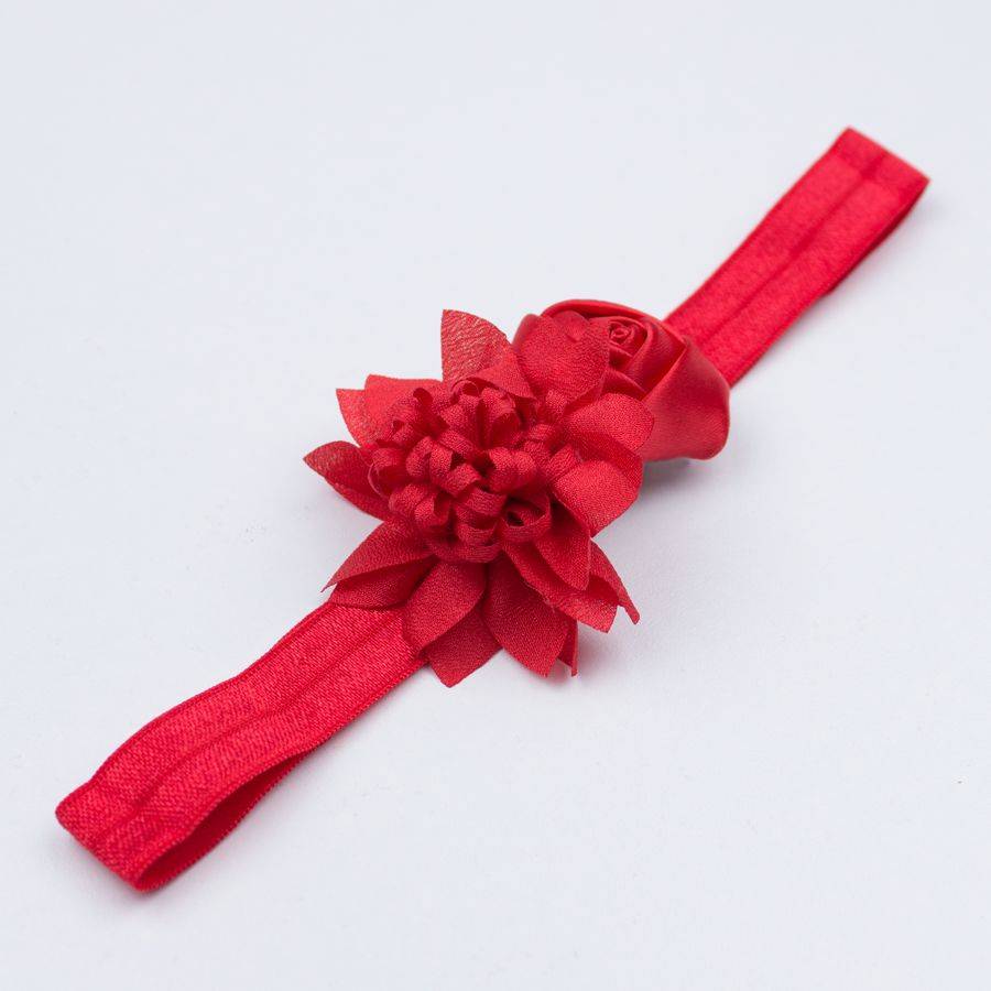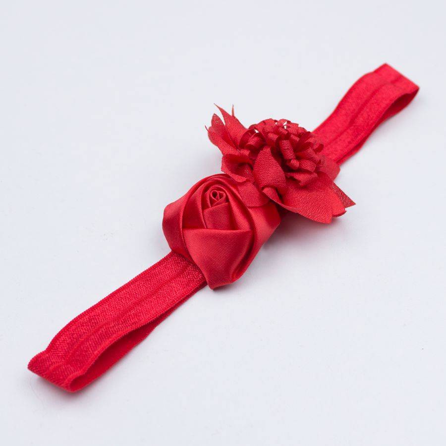 - Mooi haarbandje met twee rode bloemen op een rood haarbandje.