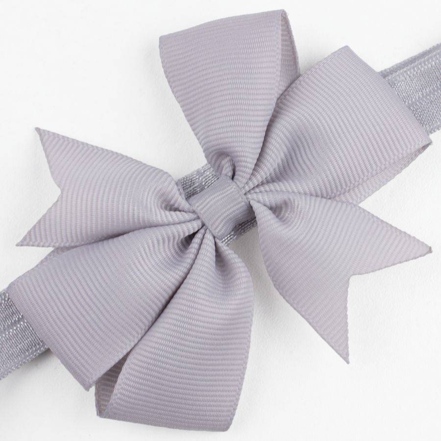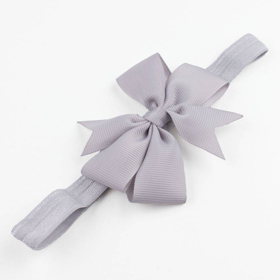 - Mooie, grijze strik op een grijs haarbandje.