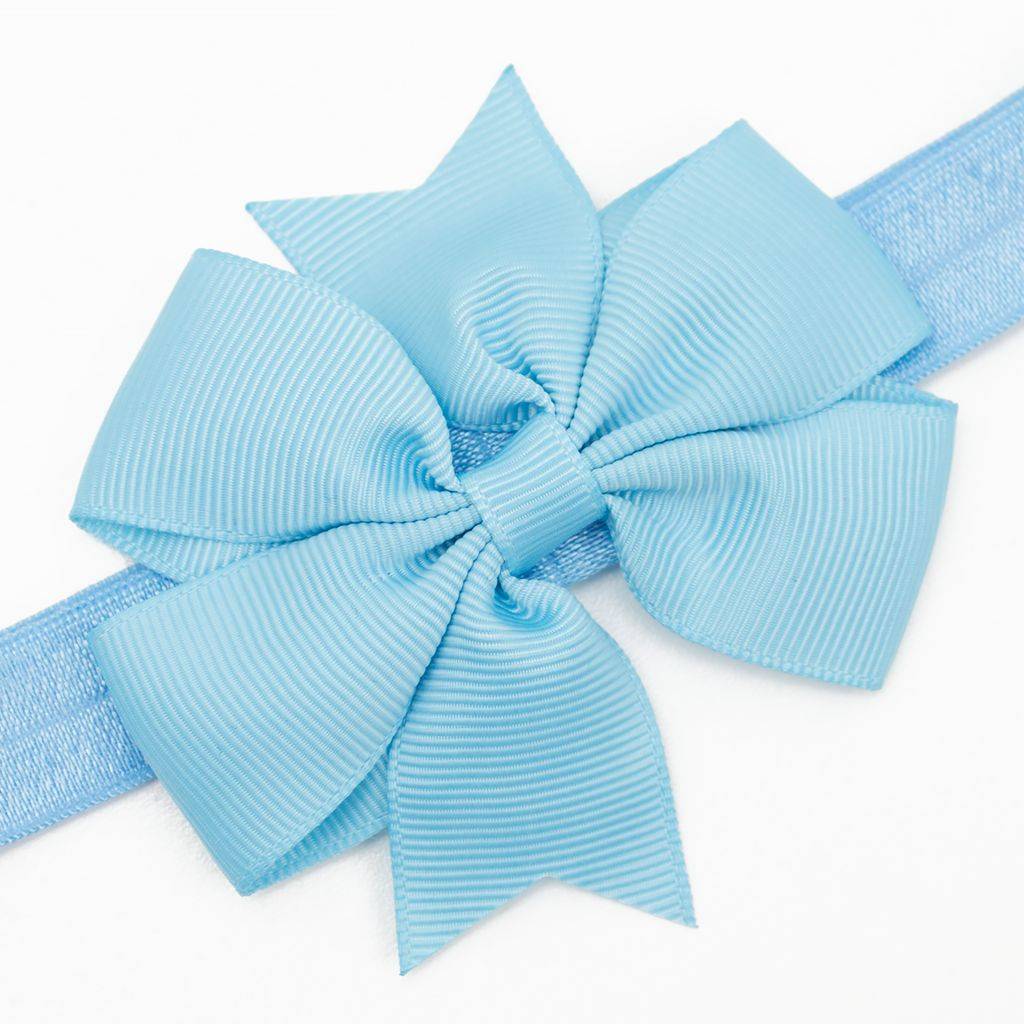 - Mooie, lichtblauwe strik op een lichtblauw haarbandje.