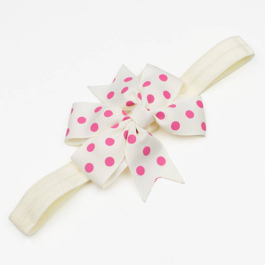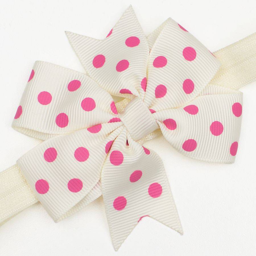 - Grappig haarbandje van een ivoor gestippelde strik op een ivoorkleurig bandje.