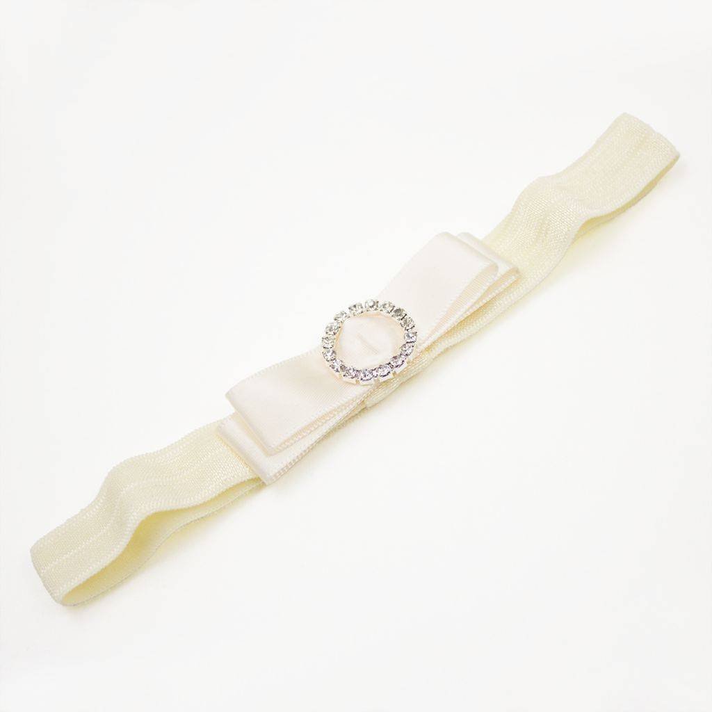 Baby haarbandje strik met strass clip (ivoor)