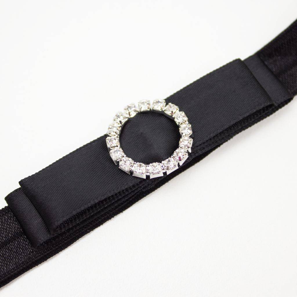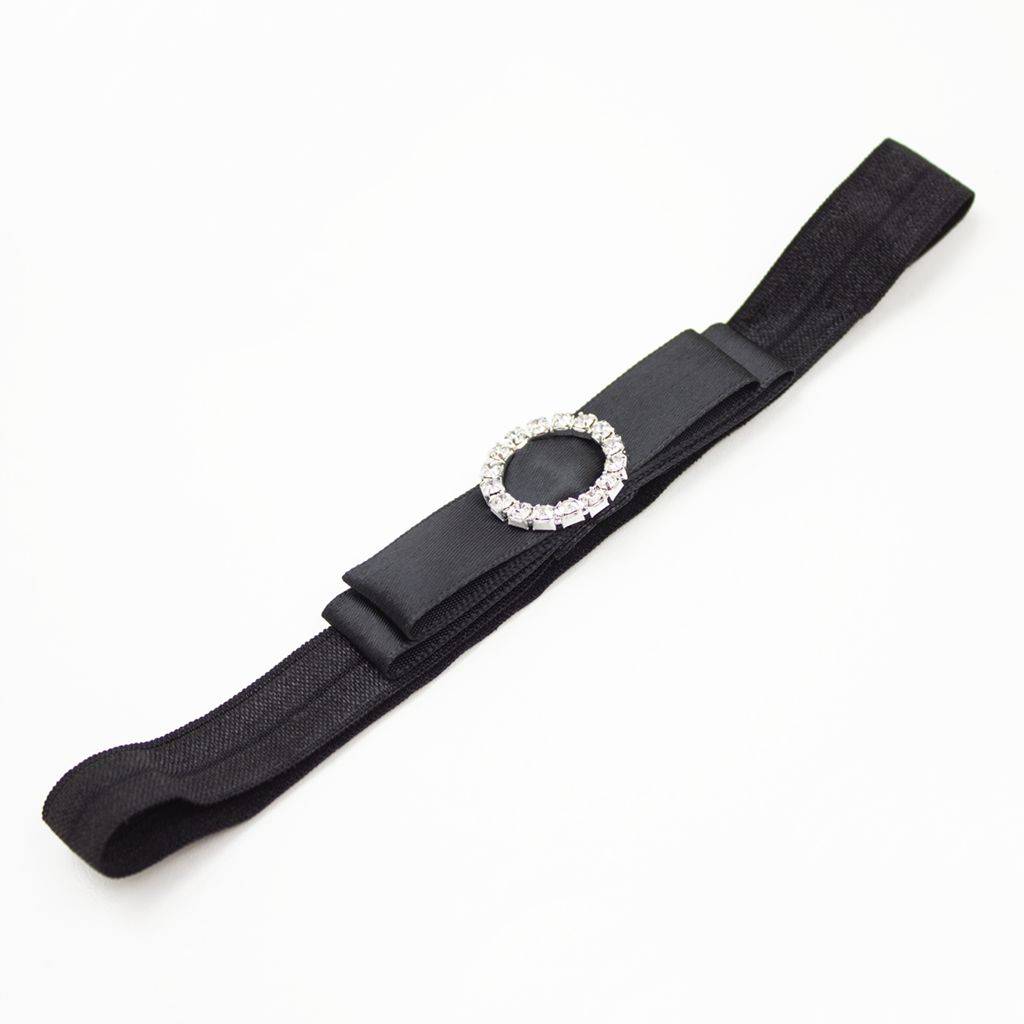 - Eenvoudig, maar chique haarbandje waarop een smalle strik en clip met mooie strass steentjes.