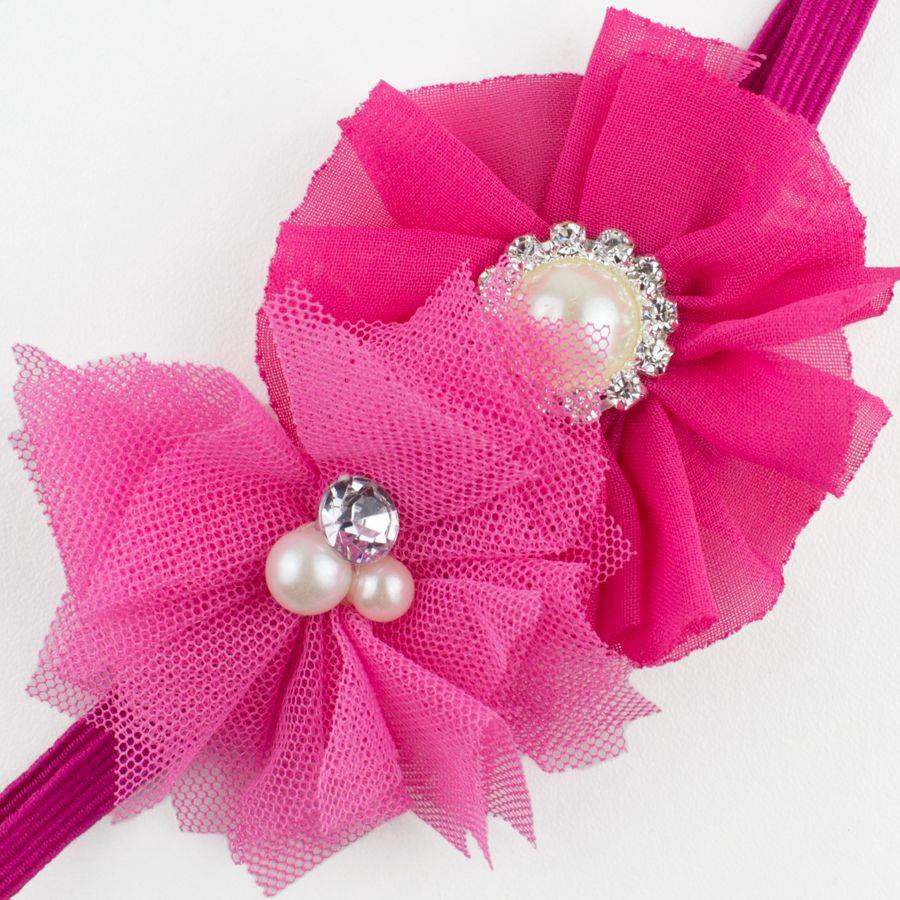 Baby haarbandje tule/chiffon met parels (fuchsia)