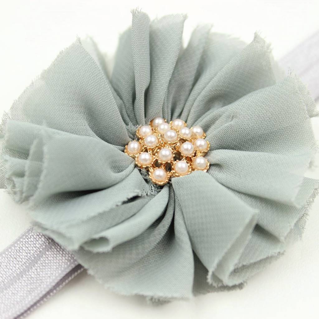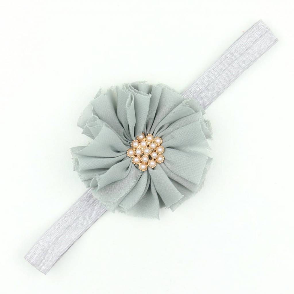 - Mooi haarbandje met een grote grijze bloem op een grijs haarbandje.