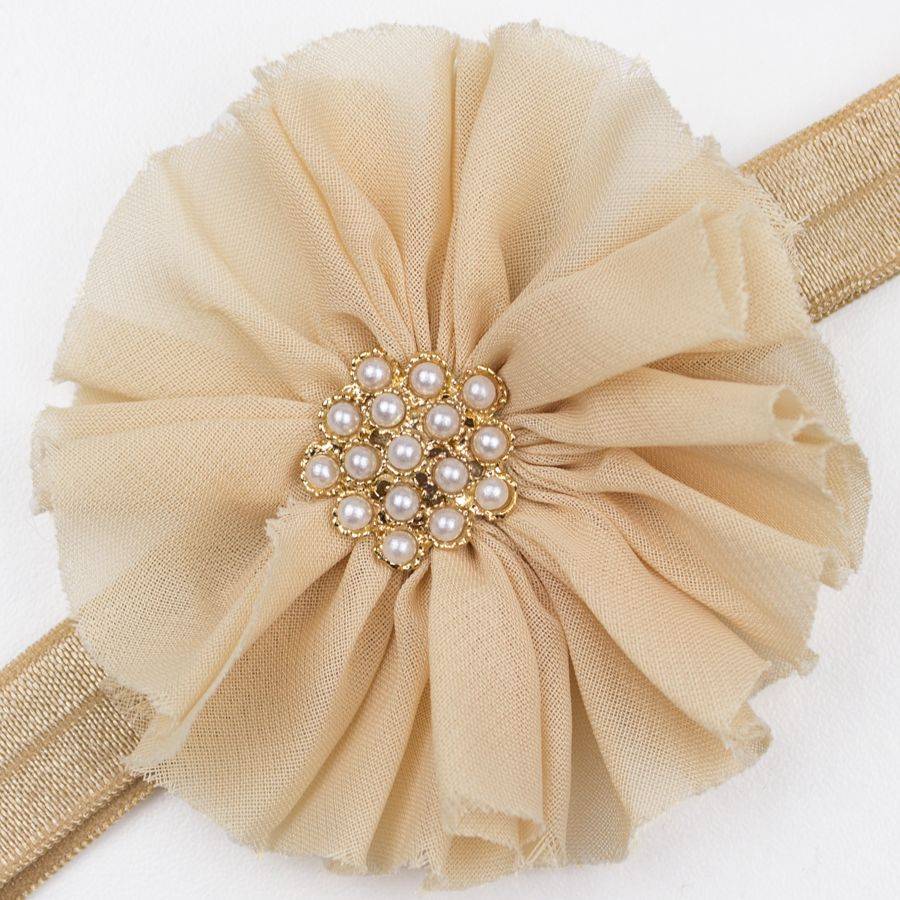 Baby haarbandje vintage bloem parel (zand)