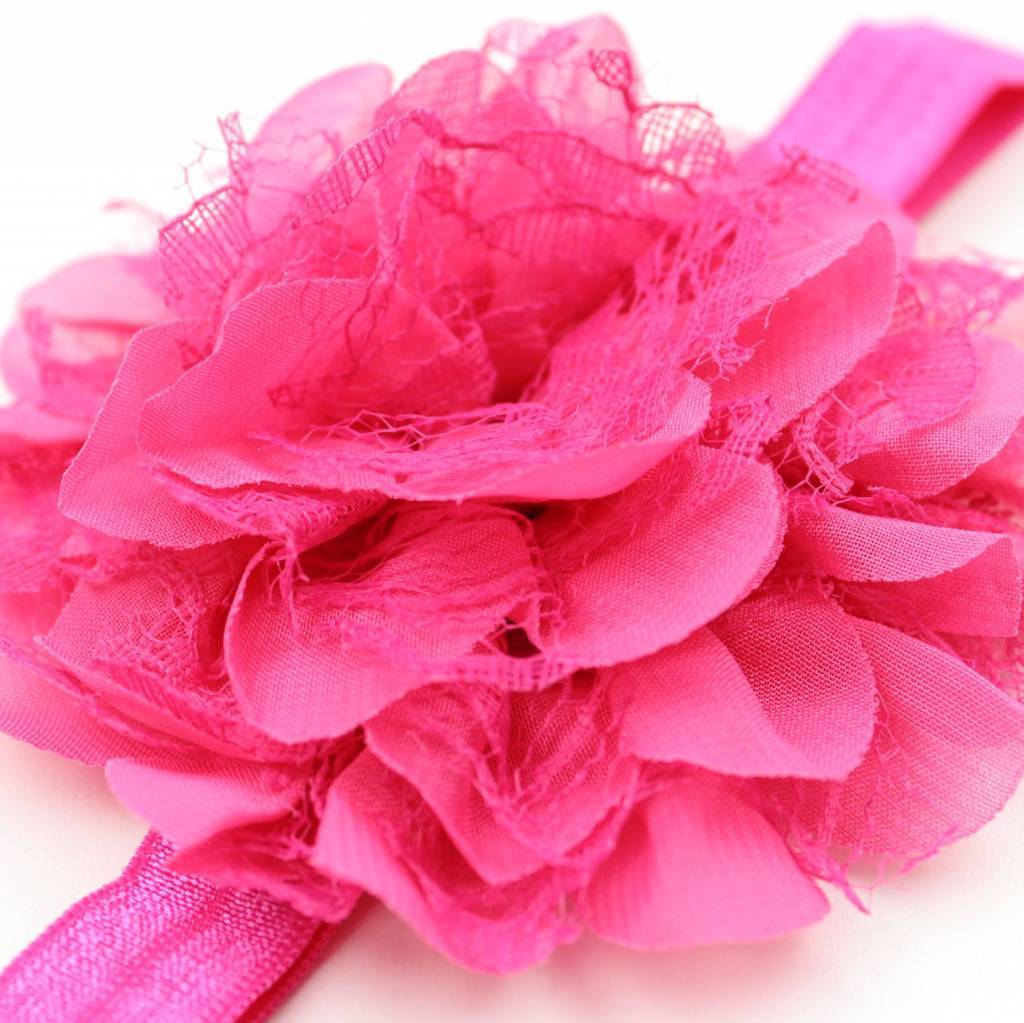 - Mooi haarbandje met een grote fuchsia bloem op een fuchsia haarbandje.