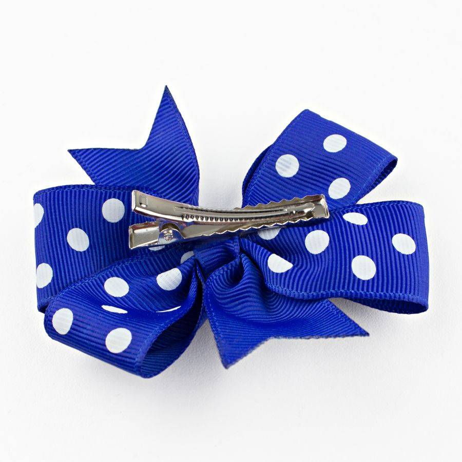 - Dit is een leuke haarspeld met blauwe strik met witte stippels.