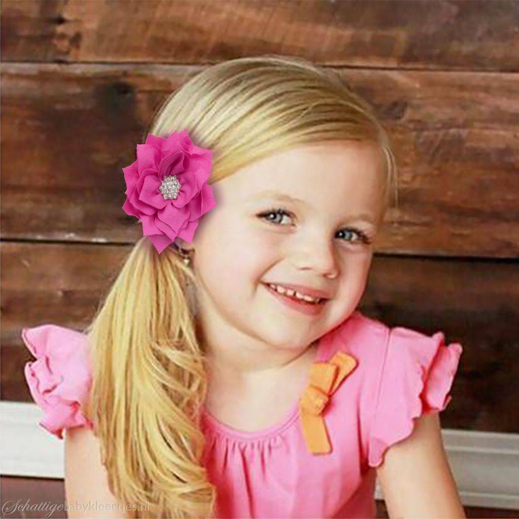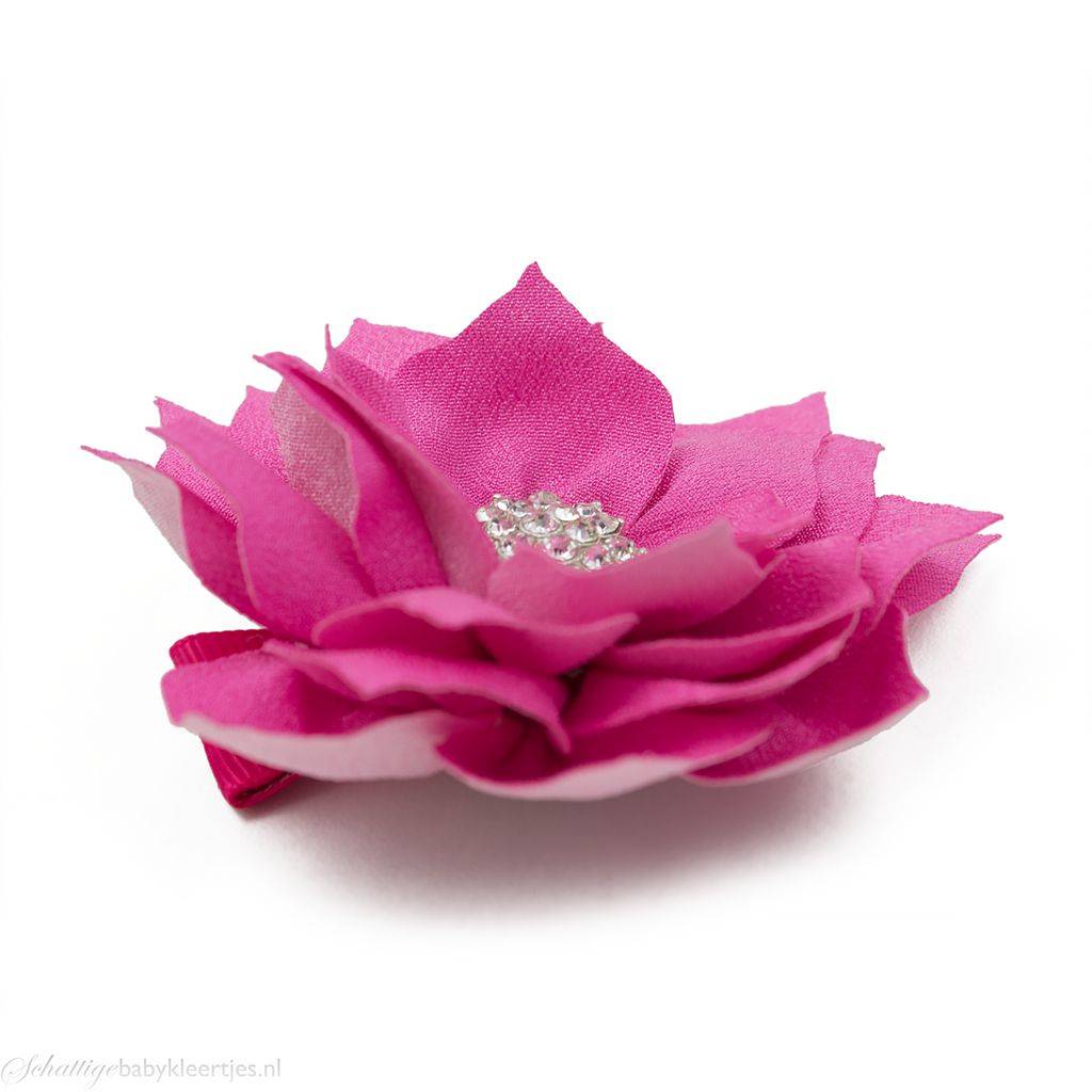 - Dit is een prachtig haarspeldje van een chiffon bloem met fijne bloemblaadjes en een strass steen.