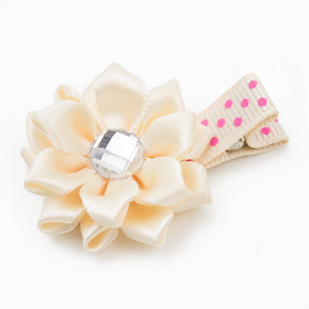 - raktisch haarspeldje van een satijnen margrietje met strass op een stippelspeldje.