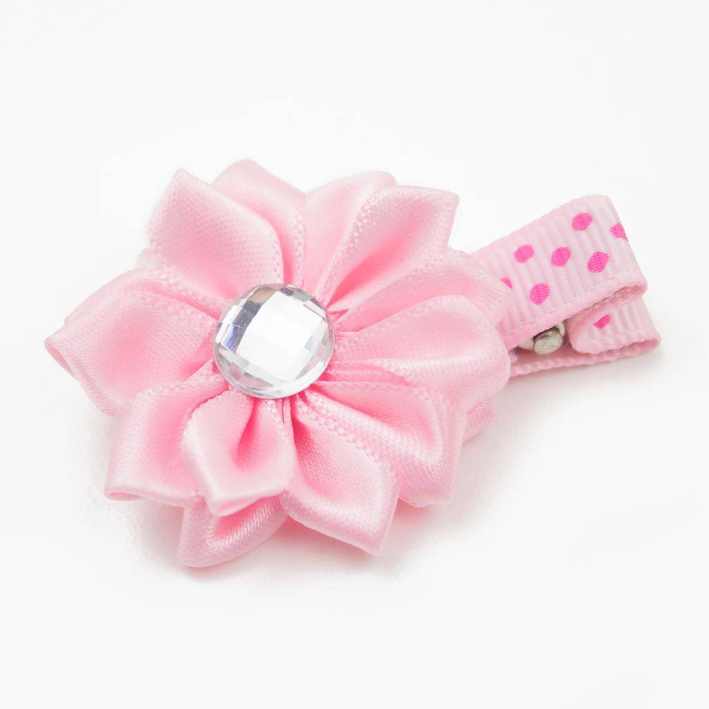 - raktisch haarspeldje van een satijnen margrietje met strass op een stippelspeldje.