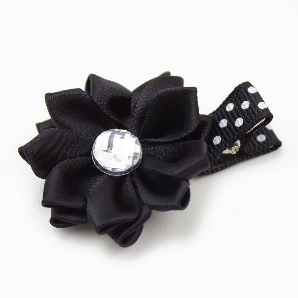 - raktisch haarspeldje van een satijnen margrietje met strass op een stippelspeldje.