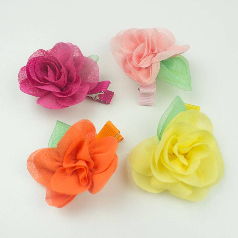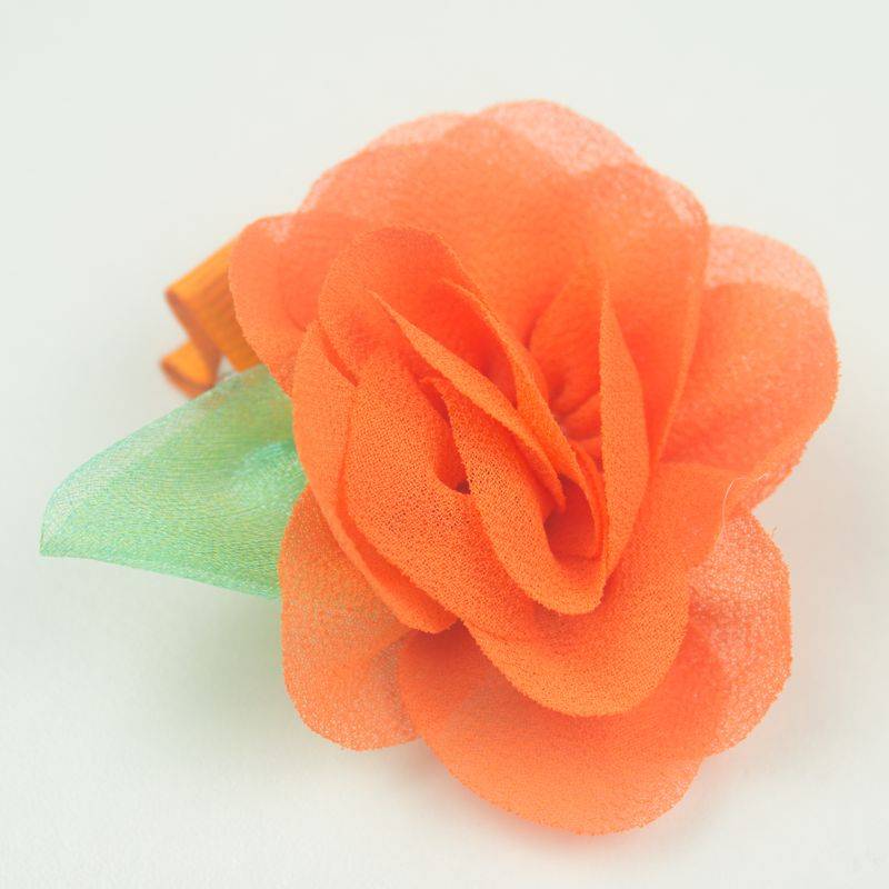 - Opvallende oranje haarspeld met een grote oranje chiffon bloem op clip.