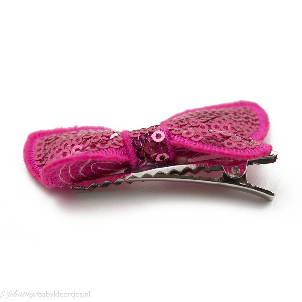 - Haarspeldje met een mooie fuchsia vlinder van glitter pailletjes op clip.