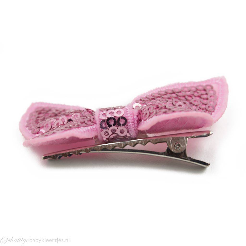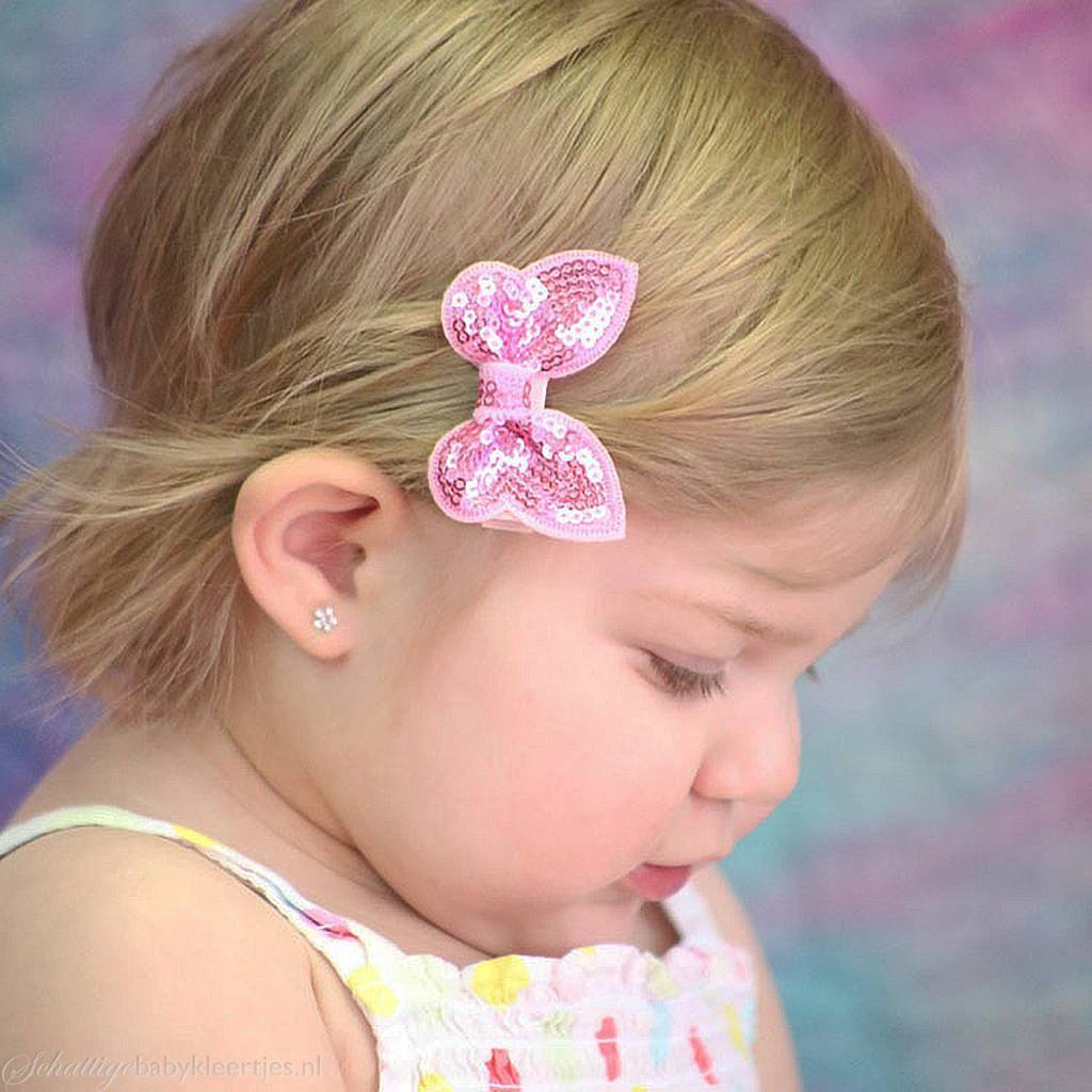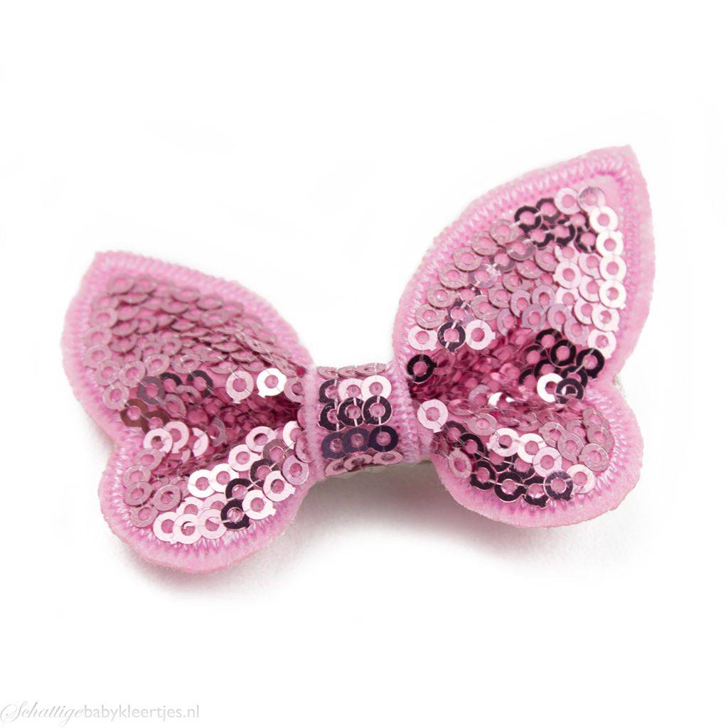 - Haarspeldje met een mooie lichtroze vlinder van glitter pailletjes op clip.